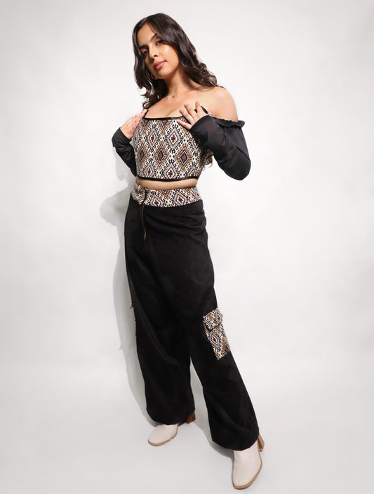 Adele Regain Black Mesh Blazer Corset Top and Pant