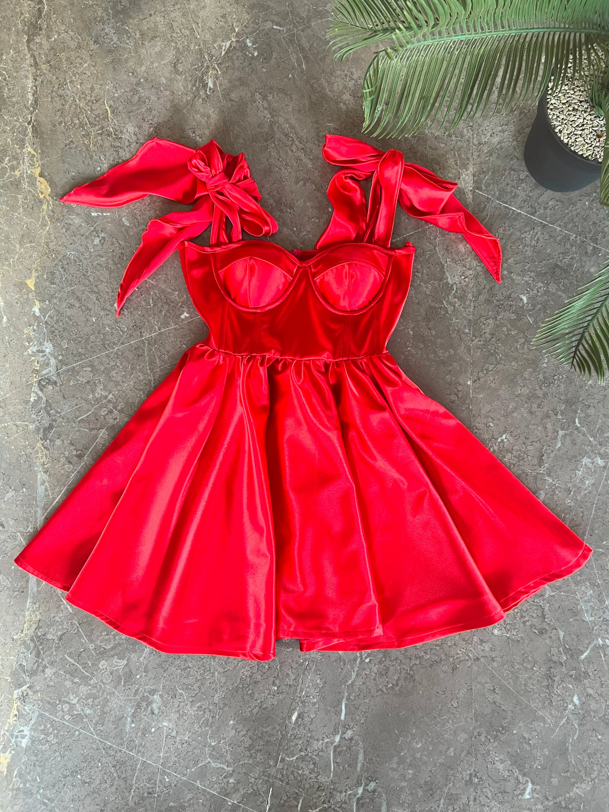 Red satin Corset Dress
