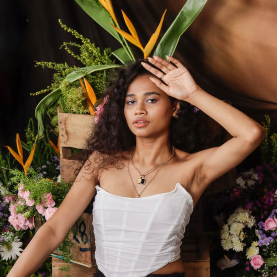 Our Athena corset is made from satin & Net that'll make you feel your most glamorous as soon as you slip it on. It has a décolletage baring strapless bodice and the sculptural boning defines your waist. The pretty lace up back allows you to control the fit and we love this paired with jeans or skirt for a more glam vibe.