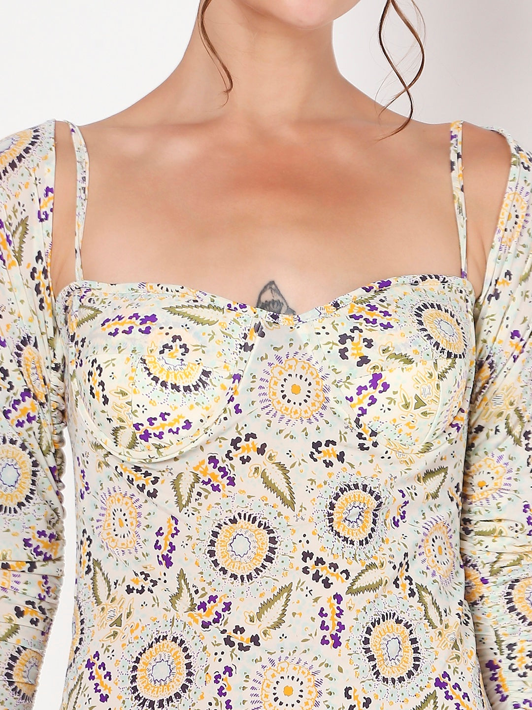 Our Banana spring dress is made from polly lycra that'll make you feel your most glamorous as soon as you slip it on. It has a décolletage baring strap bodice and the sculptural boning defines your waist. The pretty lace up back allows you to control the fit and we love this paired with jeans or skirt for a more glam vibe.