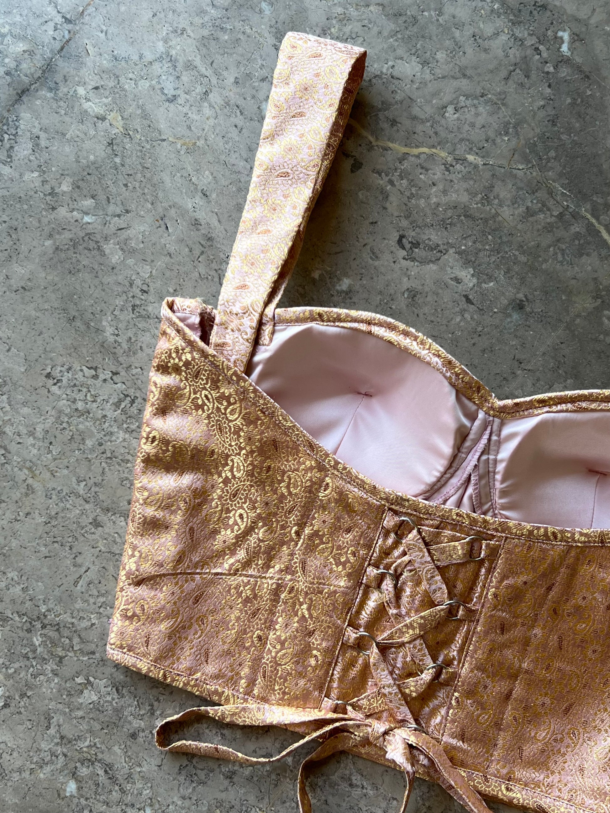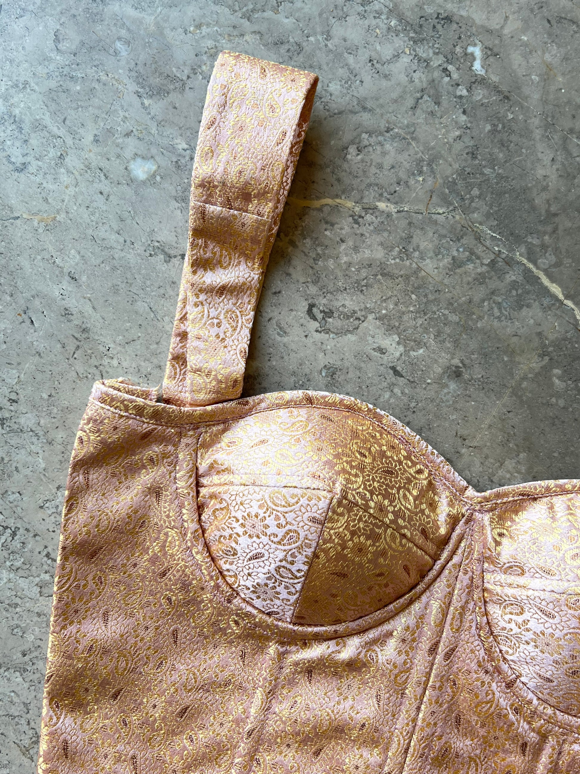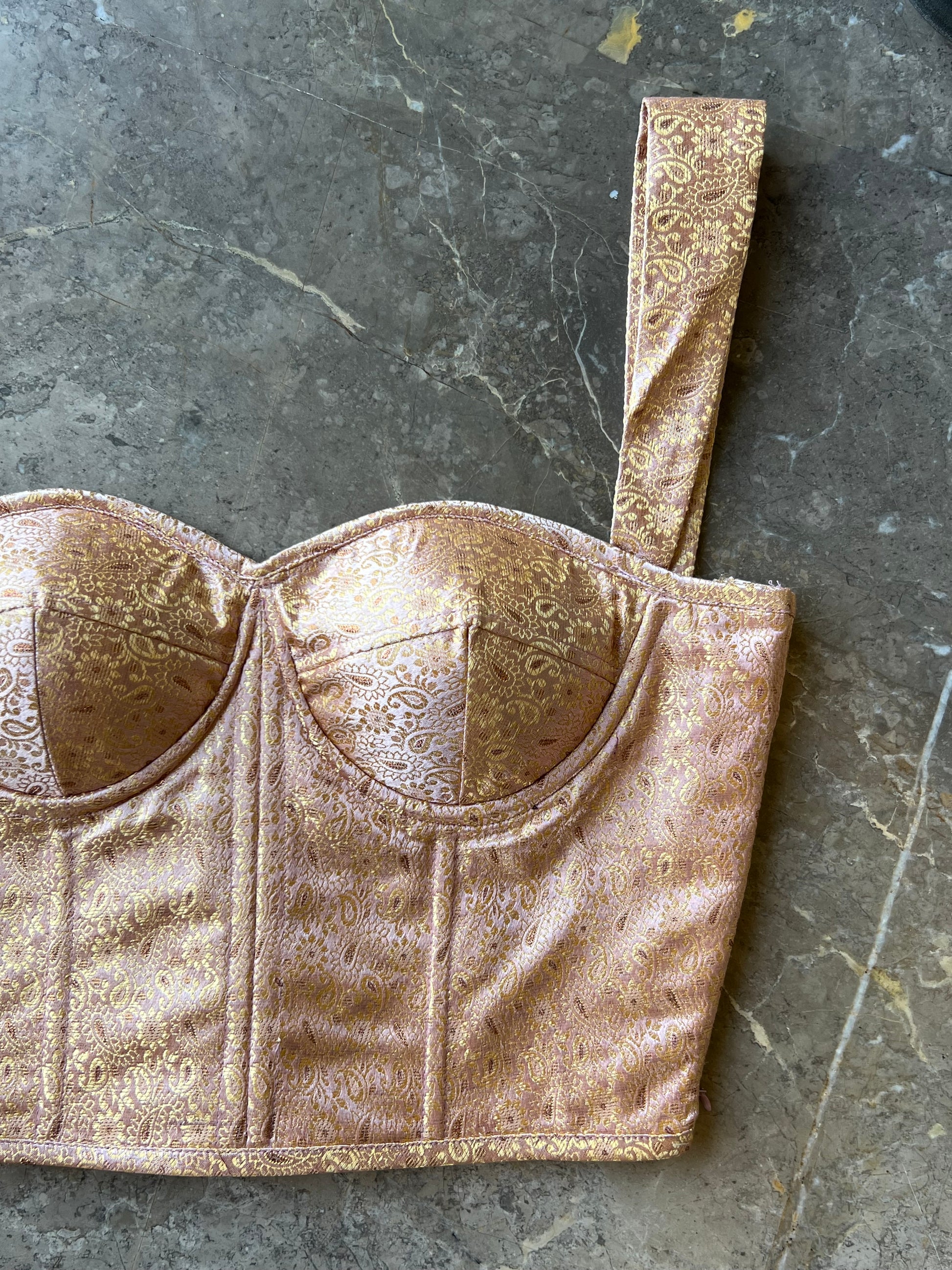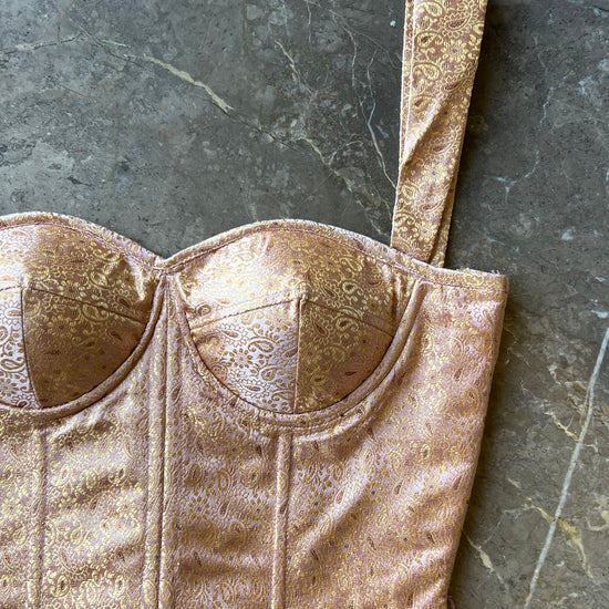 Corset: plunge neckline,has boning and drawstring closure, this piece is designed to snatch in the figure in it's best way possible , has shoulder straps and has zip on the side.