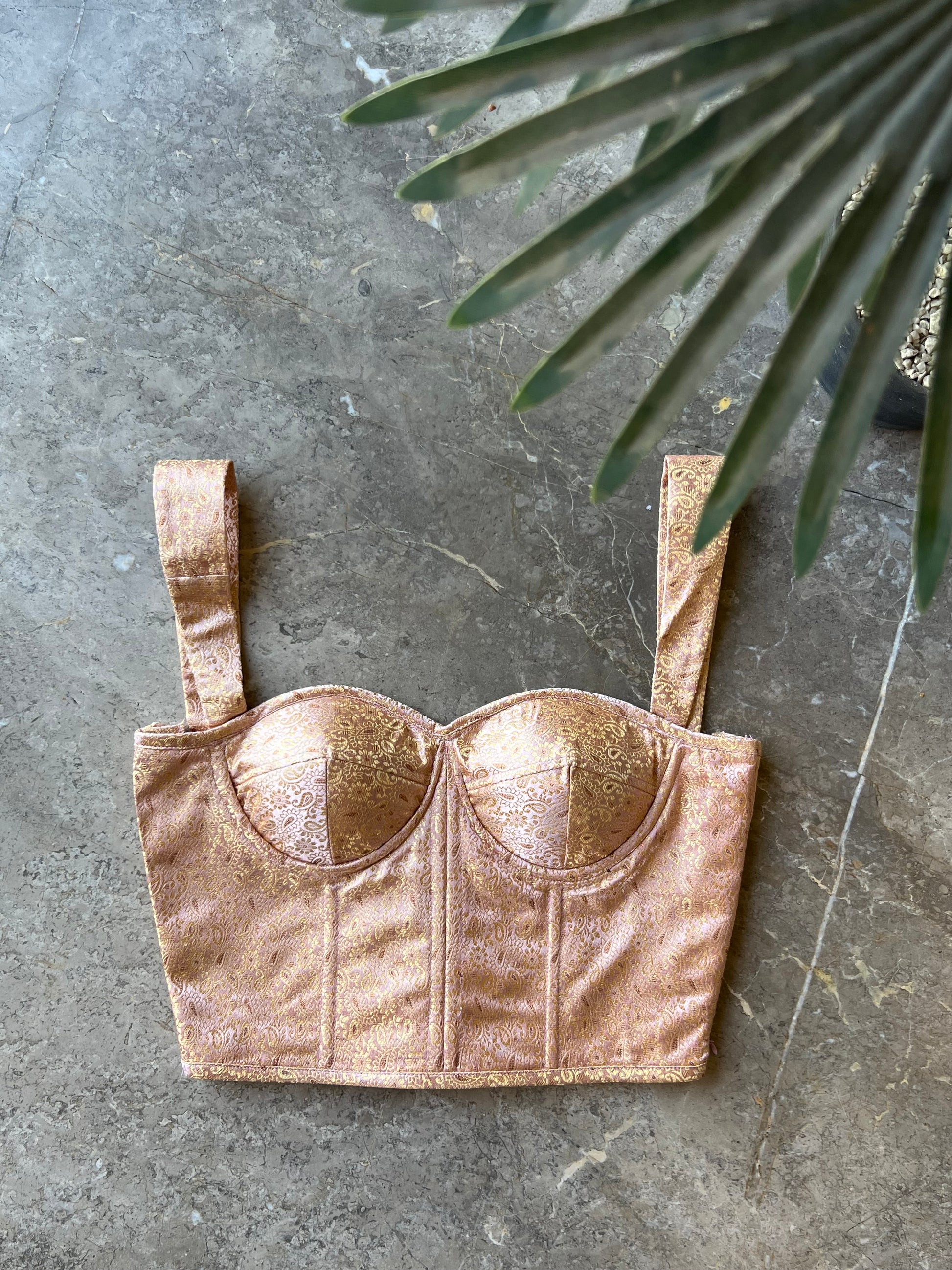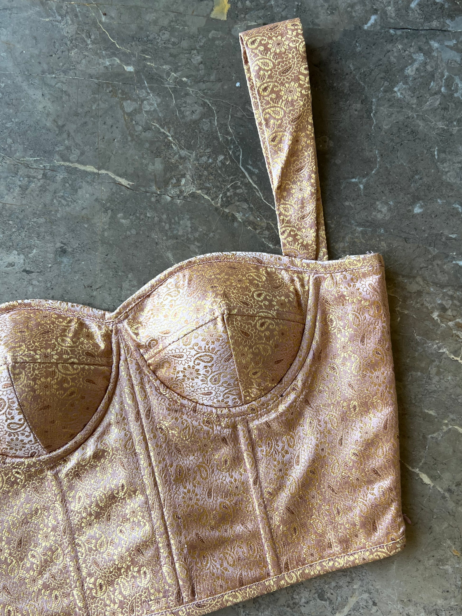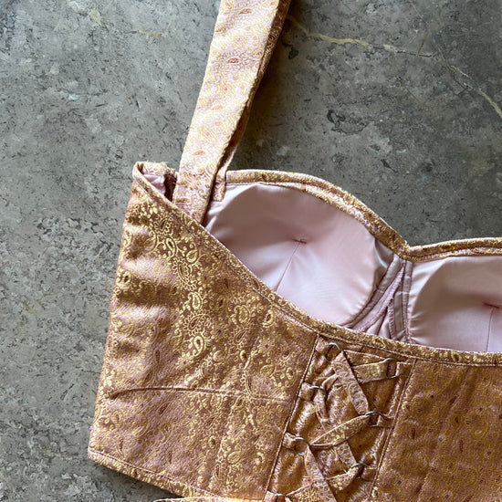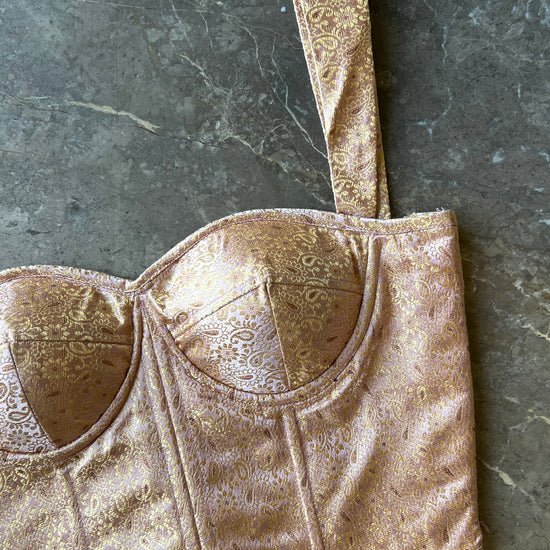 Corset: plunge neckline,has boning and drawstring closure, this piece is designed to snatch in the figure in it's best way possible , has shoulder straps and has zip on the side.