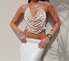 Elevate your beach look with our Hand-Beaded Elegance top – where timeless sophistication meets intricate craftsmanship. This show-stopping gown features meticulously hand-applied beads that shimmer with every movement, creating a dazzling effect from every angle.