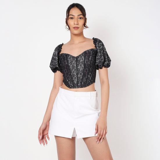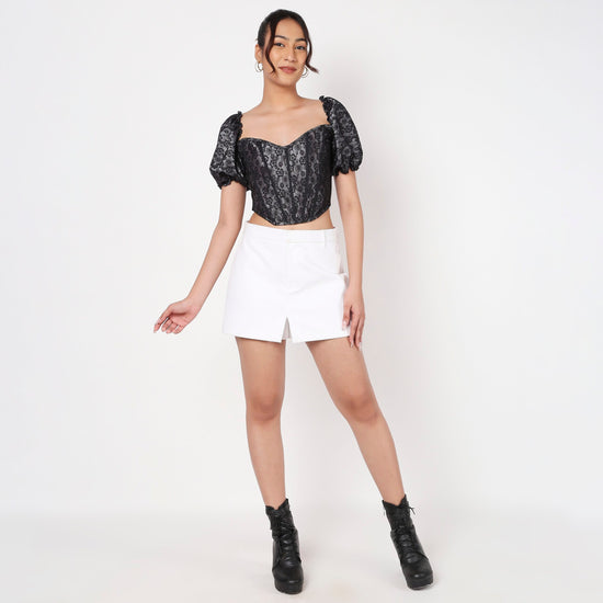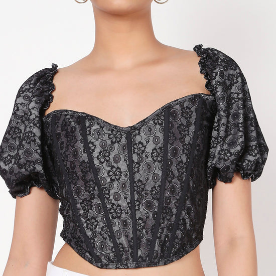 inbuilt Lacey corset Has boning Top Bustier Wash Care:-Hand wash in water Do not Bleach Do not tumble dry Line dry in the shade.
