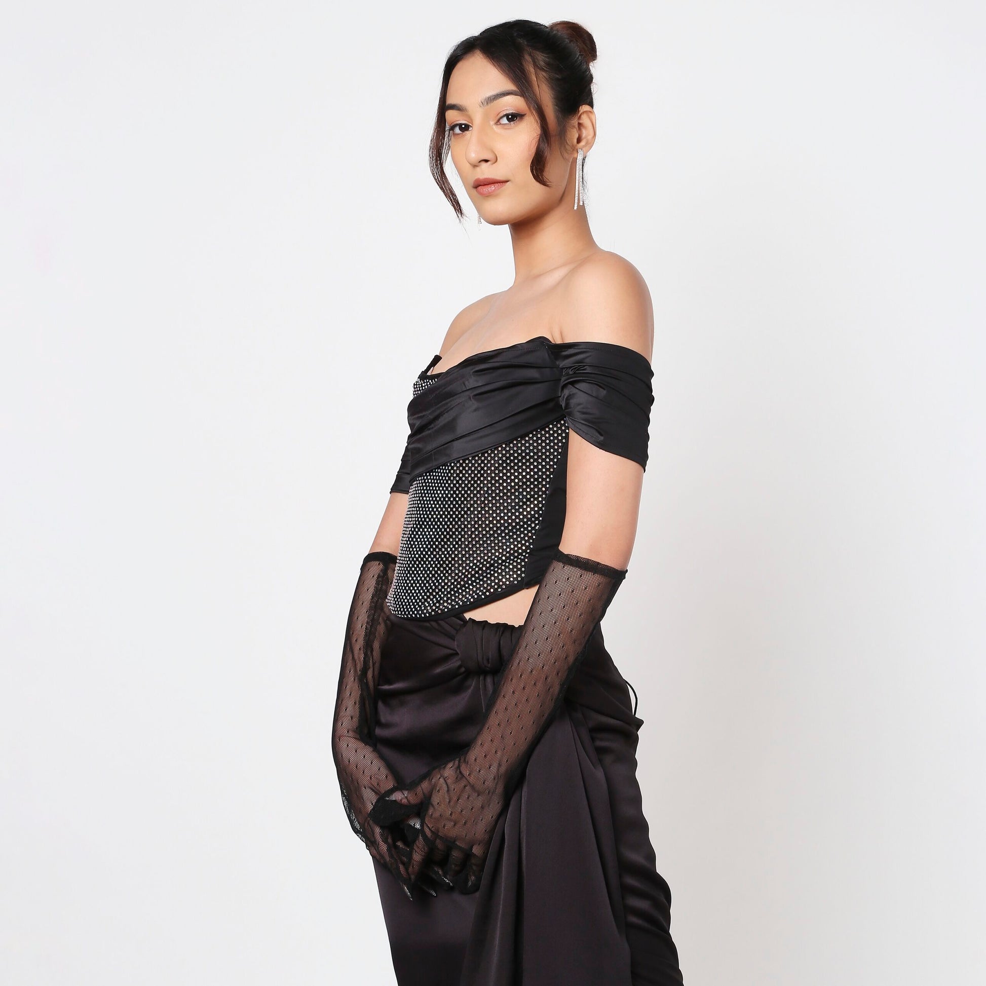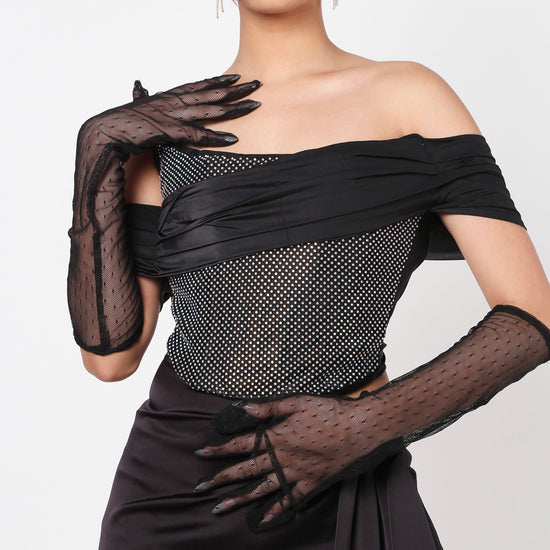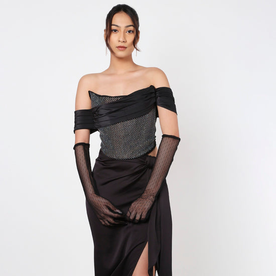 Black Rhinestone Corset Top With Gloves