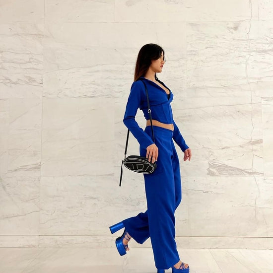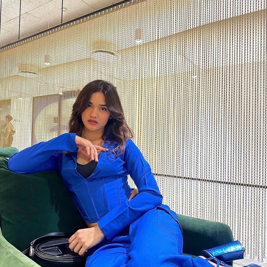 Make a bold style statement with our Blue Blazer Co-Ord Set, a sophisticated and fashion-forward ensemble perfect for any occasion. Featuring a sleek scuba corset top with a blazer-inspired collar, detailed boning, and a structured fit, this non-padded top adds modern flair to your wardrobe. Paired with matching pants, this set creates a cohesive, polished look that’s both elegant and versatile.