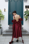Our maxi dress is a glamorous work of art. Cut from satin, it has a flattering strap neckline, and the boned bodice is softened by the gathered skirt overlay and draped panel that falls effortlessly passed the hem, highlighting just how glossy the satin is. It skims over your curves and zips to the back for easy on and has beautiful detachable bow detailing .
