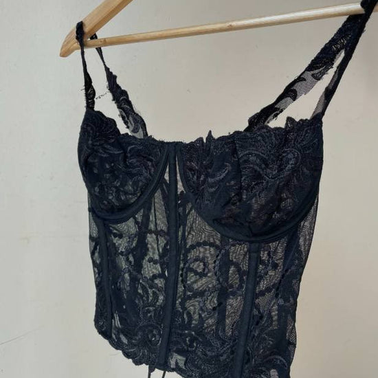 Perfect for pairing with both casual and evening wear, the Cianna Black Lacey Corset is a versatile piece that adds timeless elegance to your wardrobe.