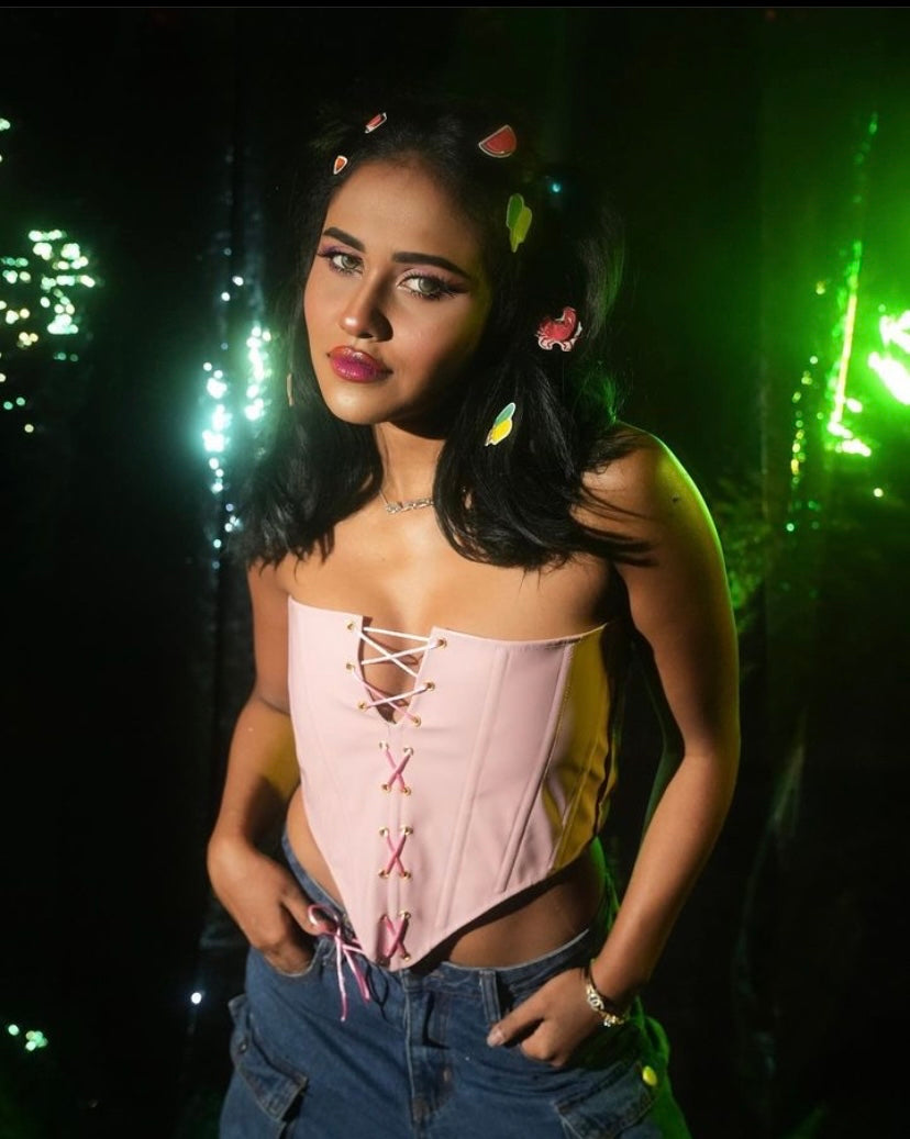 Elevate your style with The Cotton Candy Corset Top, a perfect blend of elegance and edge.