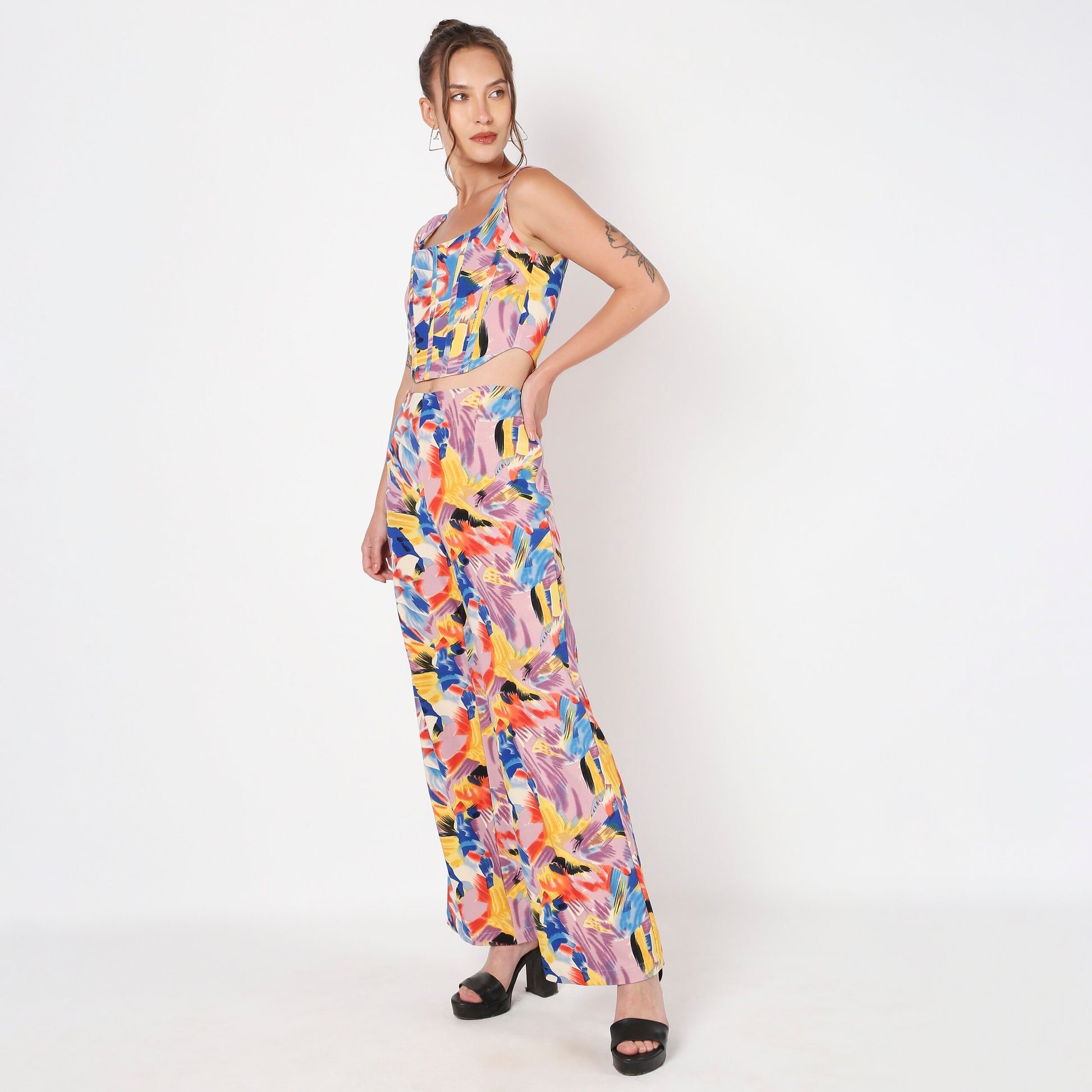 Pants and corset top Material- scuba Wash Care:-Hand wash separately with mild detergent Do not Bleach Do not tumble dry Line dry in the shade