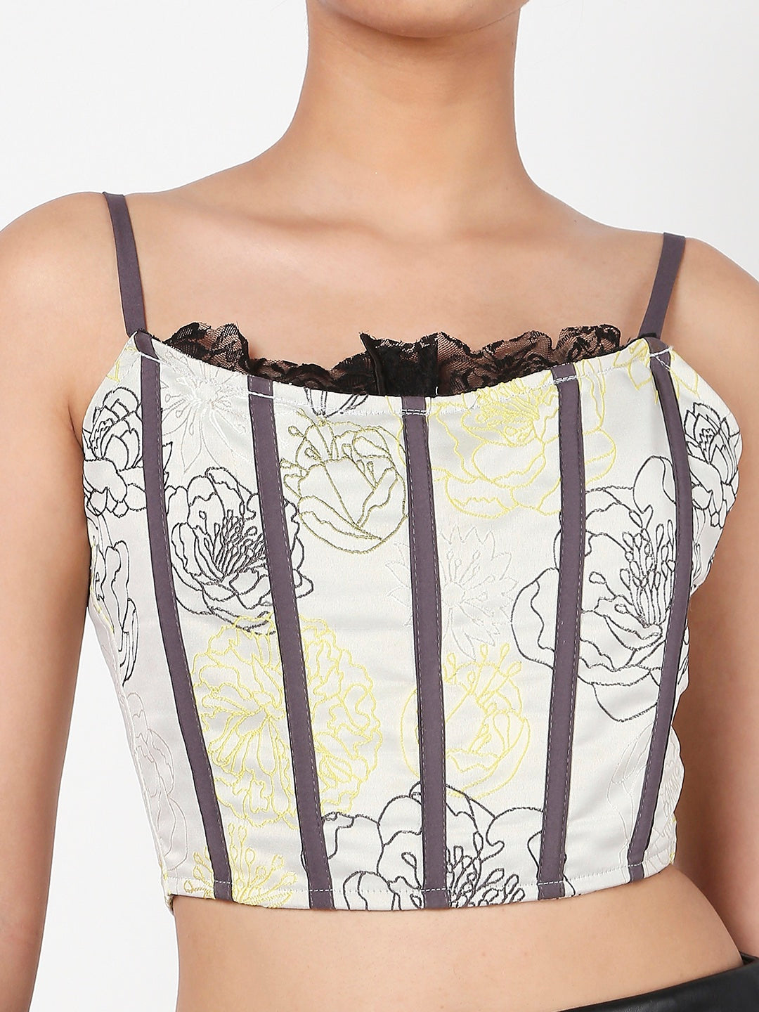 The Floral Lacey Corset Top is a versatile, feminine piece that brings a touch of elegance to your wardrobe.