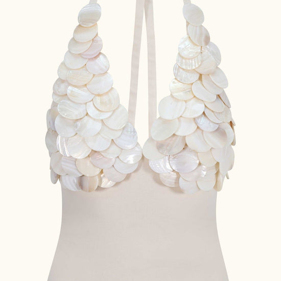 Elevate your beach look with our Hand-Beaded Elegance top – where timeless sophistication meets intricate craftsmanship. This show-stopping gown features meticulously hand-applied beads that shimmer with every movement, creating a dazzling effect from every angle.