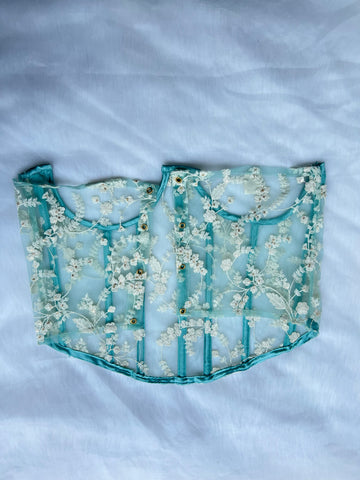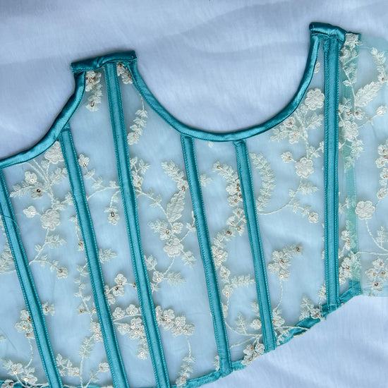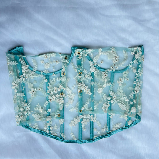 Our Green corset is made from Lacey+ satin that'll make you feel your most glamorous as soon as you slip it on. It has a décolletage baring strapless bodice and the sculptural boning defines your waist. The pretty lace up back allows you to control the fit and we love this paired with jeans or skirt for a more glam vibe.