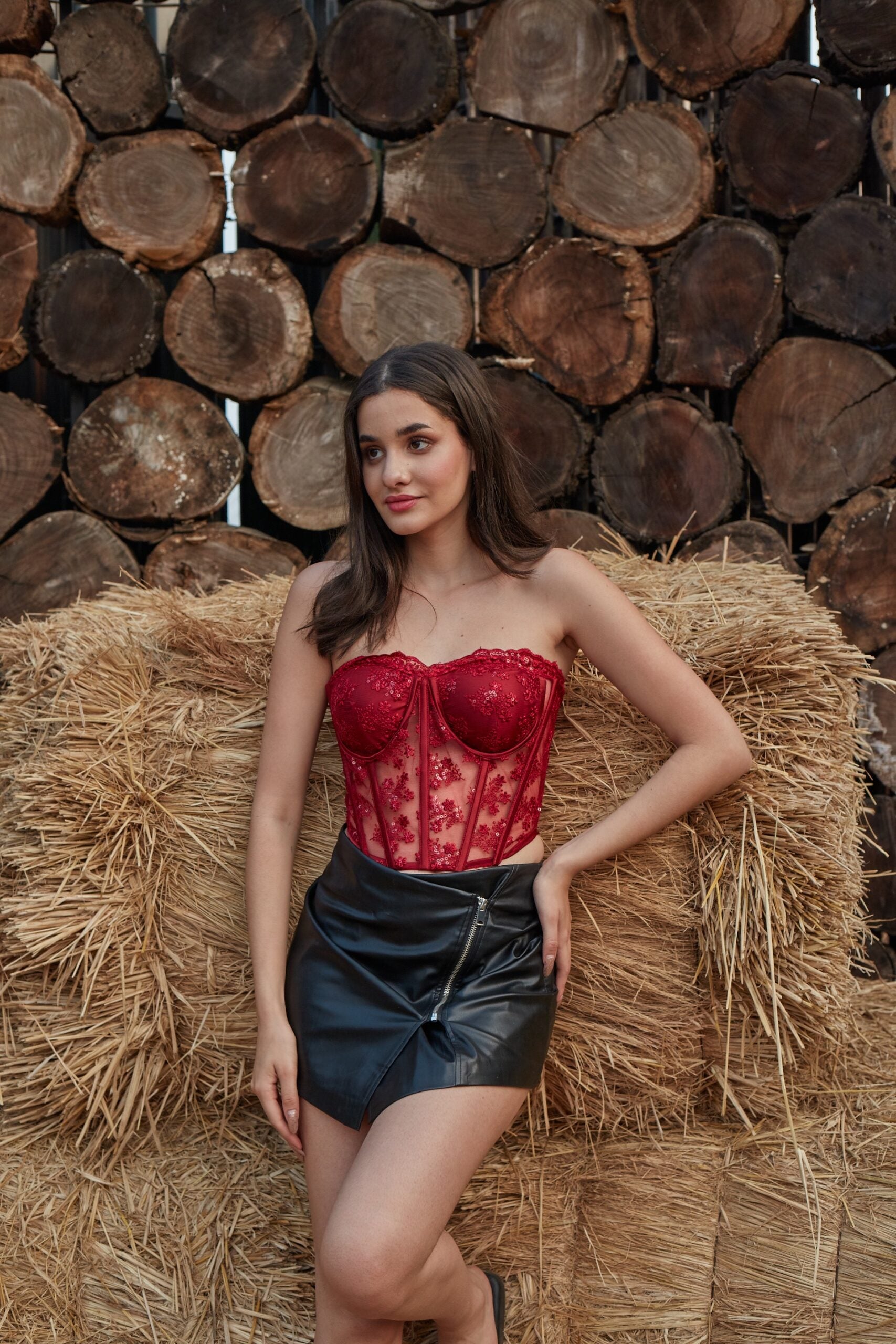 Our jingle corset is made from Lacey material that'll make you feel your most glamorous as soon as you slip it on. It has a décolletage baring strapless bodice and the sculptural boning defines your waist. The pretty lace up back allows you to control the fit and we love this paired with jeans or skirt for a more glam vibe.