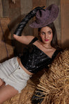 Our Latex black corset is made from Leather material that'll make you feel your most glamorous as soon as you slip it on. It has a décolletage baring strapless bodice and the sculptural boning defines your waist. The pretty lace up back allows you to control the fit and we love this paired with jeans or skirt for a more glam vibe.