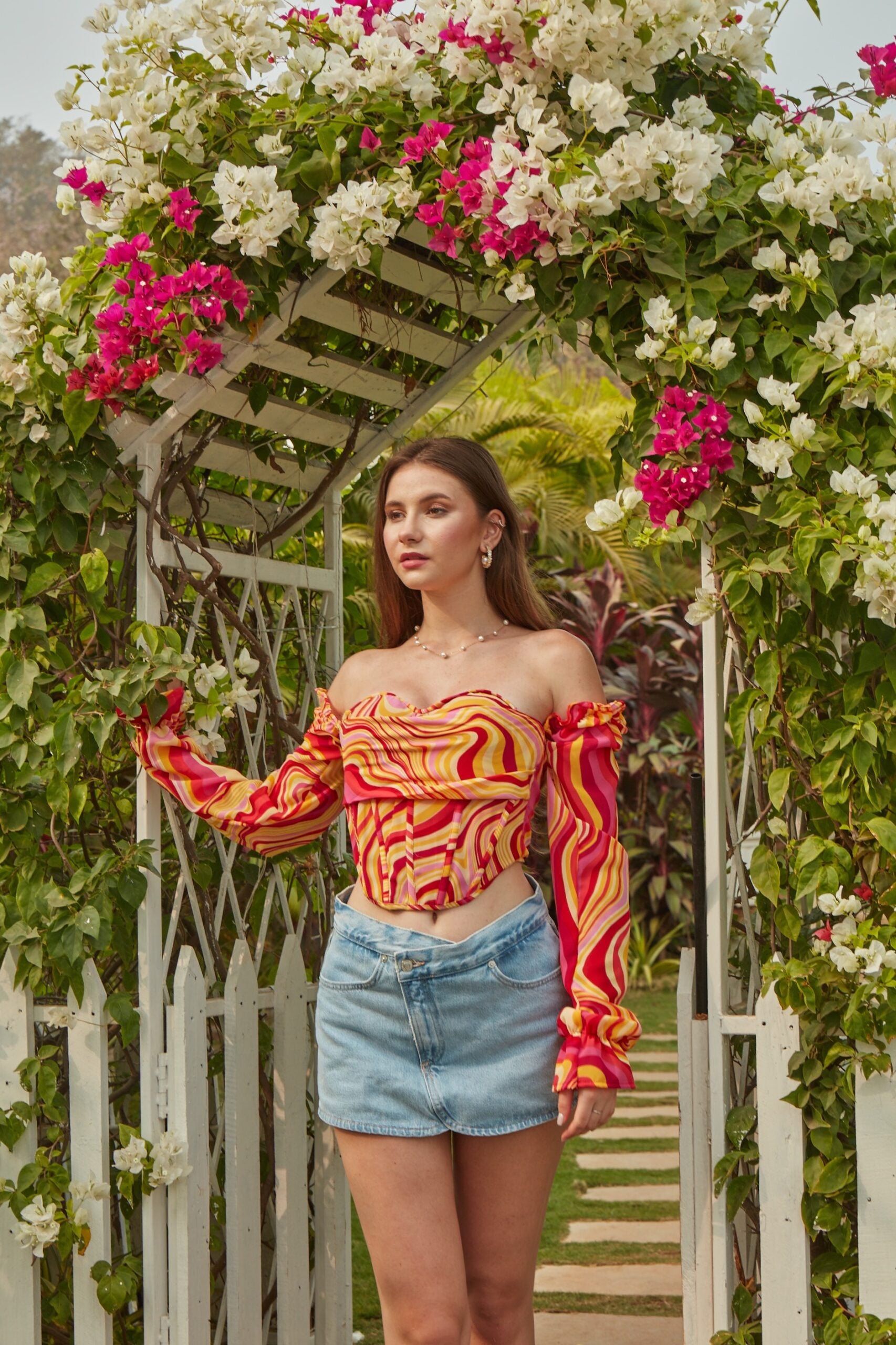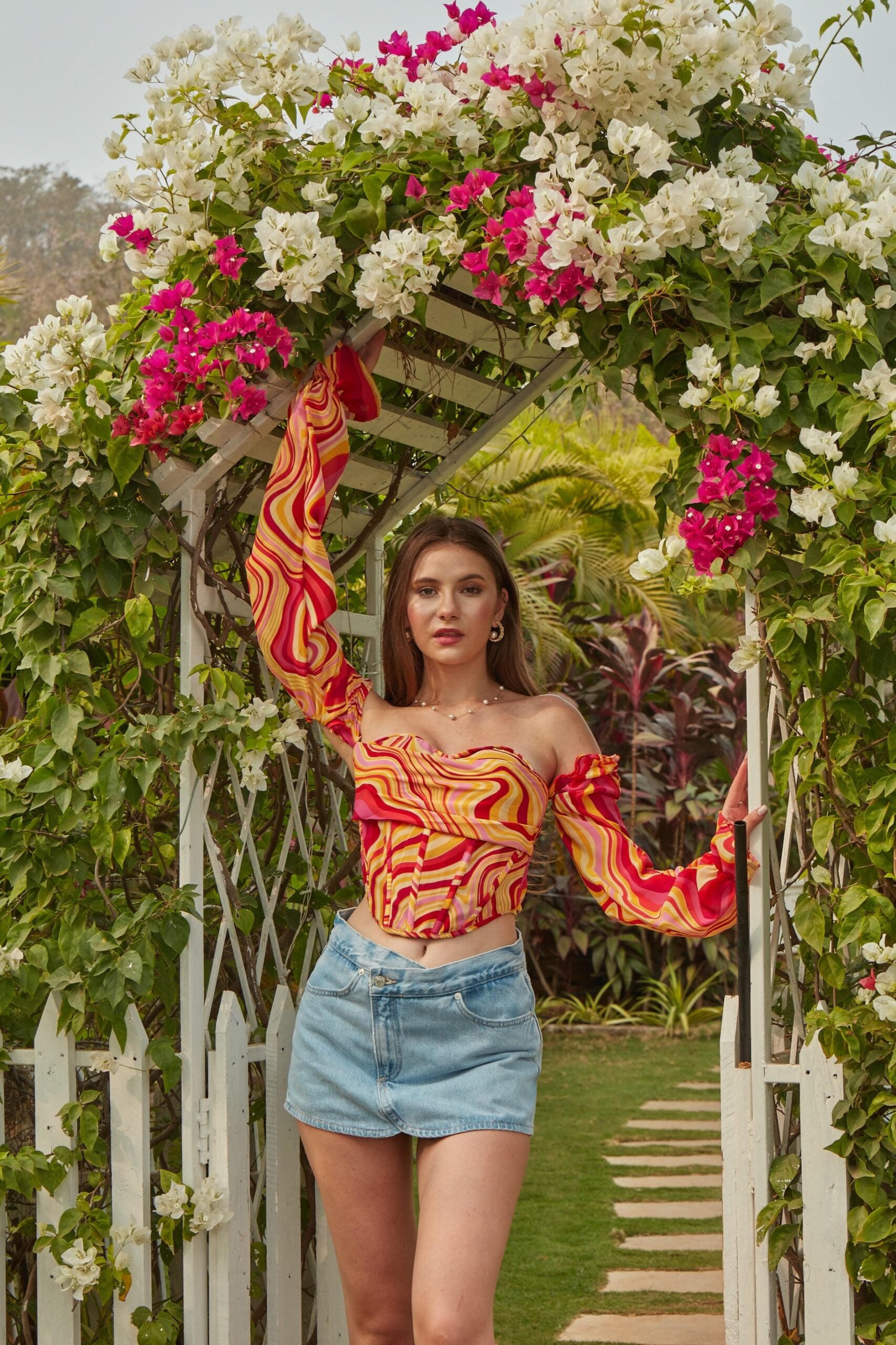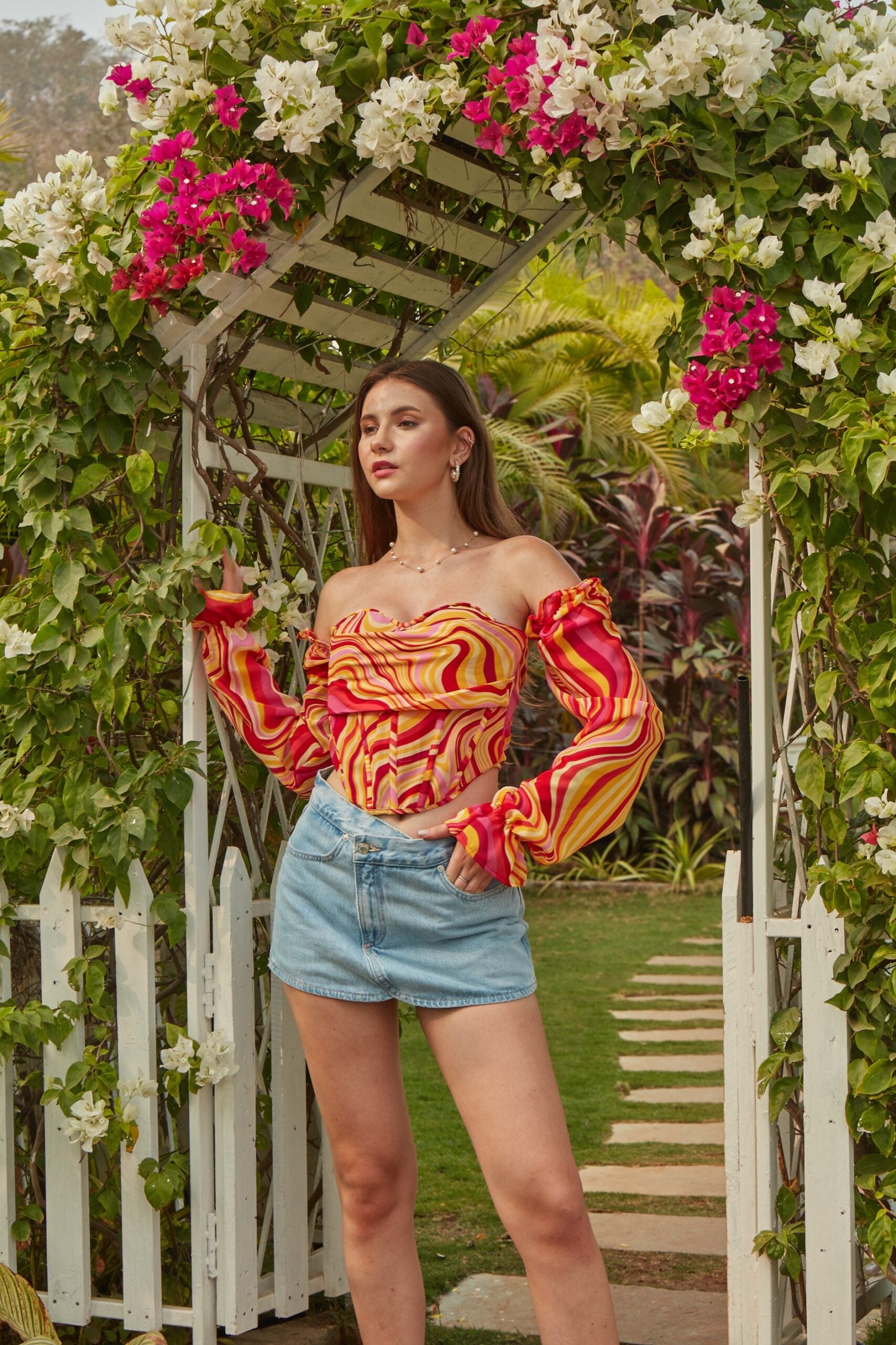 Elevate your style with our Marble Print Full Sleeve Corset Top, crafted from elegant semi-organza with a striking marble print. This corset top combines artistry with structure, featuring adjustable full sleeves for a customizable fit and a unique, lightweight feel. Perfect for adding a touch of sophistication and creativity to your look, this top is ideal for both day and evening wear.