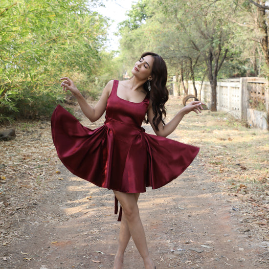 Mia Maroon Flare Corset Dress