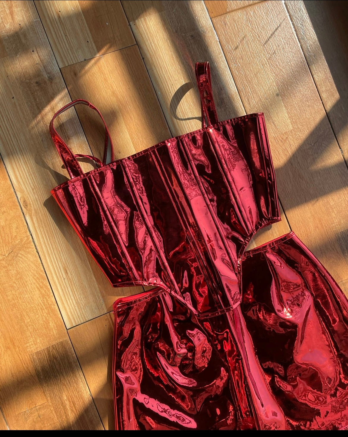 This Mirchi Red Leather Corset Top is perfect for pairing with high-waisted jeans, skirts, or even traditional fusion wear, letting you create a look that’s uniquely yours and effortlessly chic.