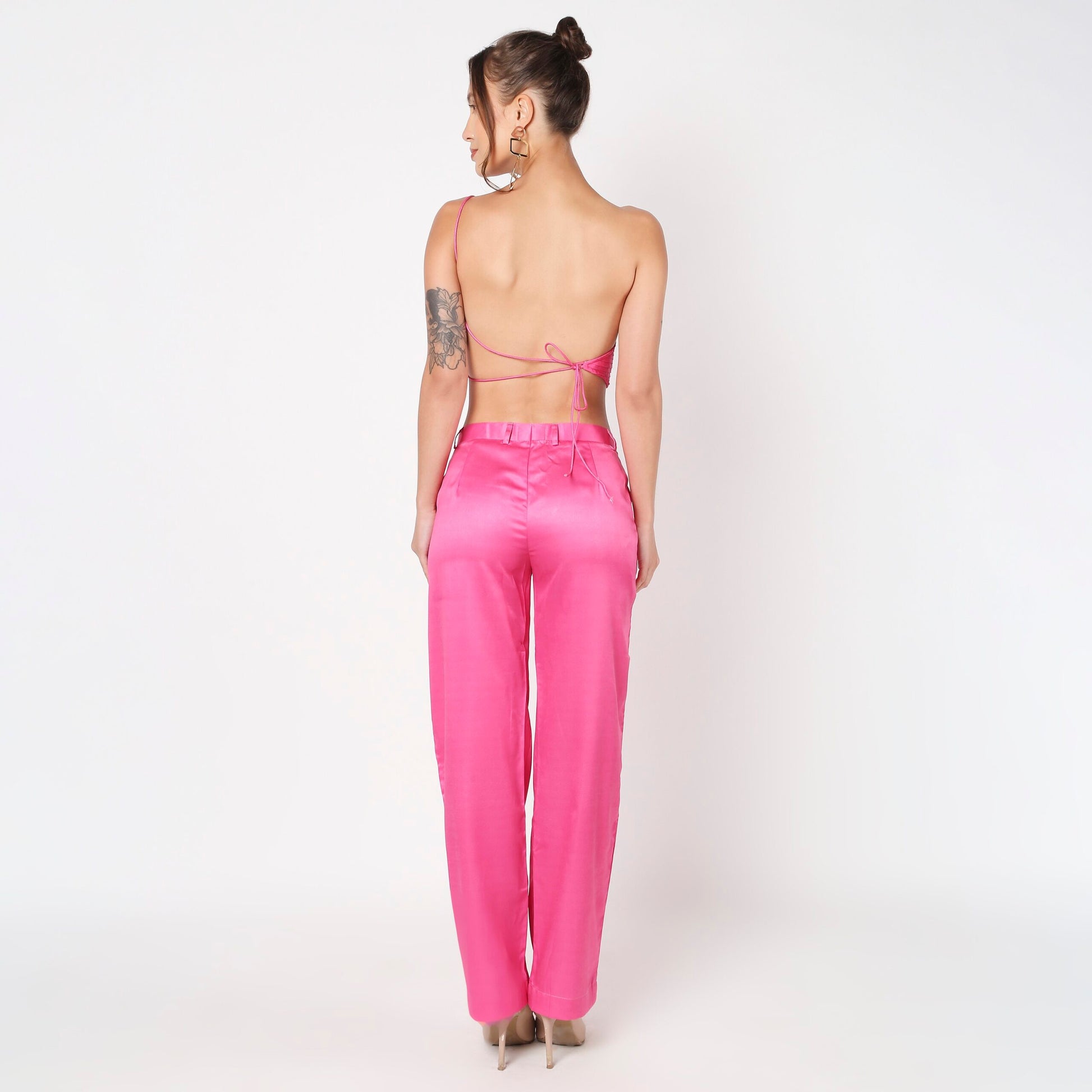 Pink Pleated Backless Co ord Set