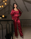 Our Co-Ord Set is a glamorous work of art. Cut from satin, it has a flattering full sleeves neckline, and the boned bodice is softened by the U shape at the bottom and highlighting just how glossy the satin is. It skims over your curves and drawstring to the back for easy fit and has beautiful frill detailing