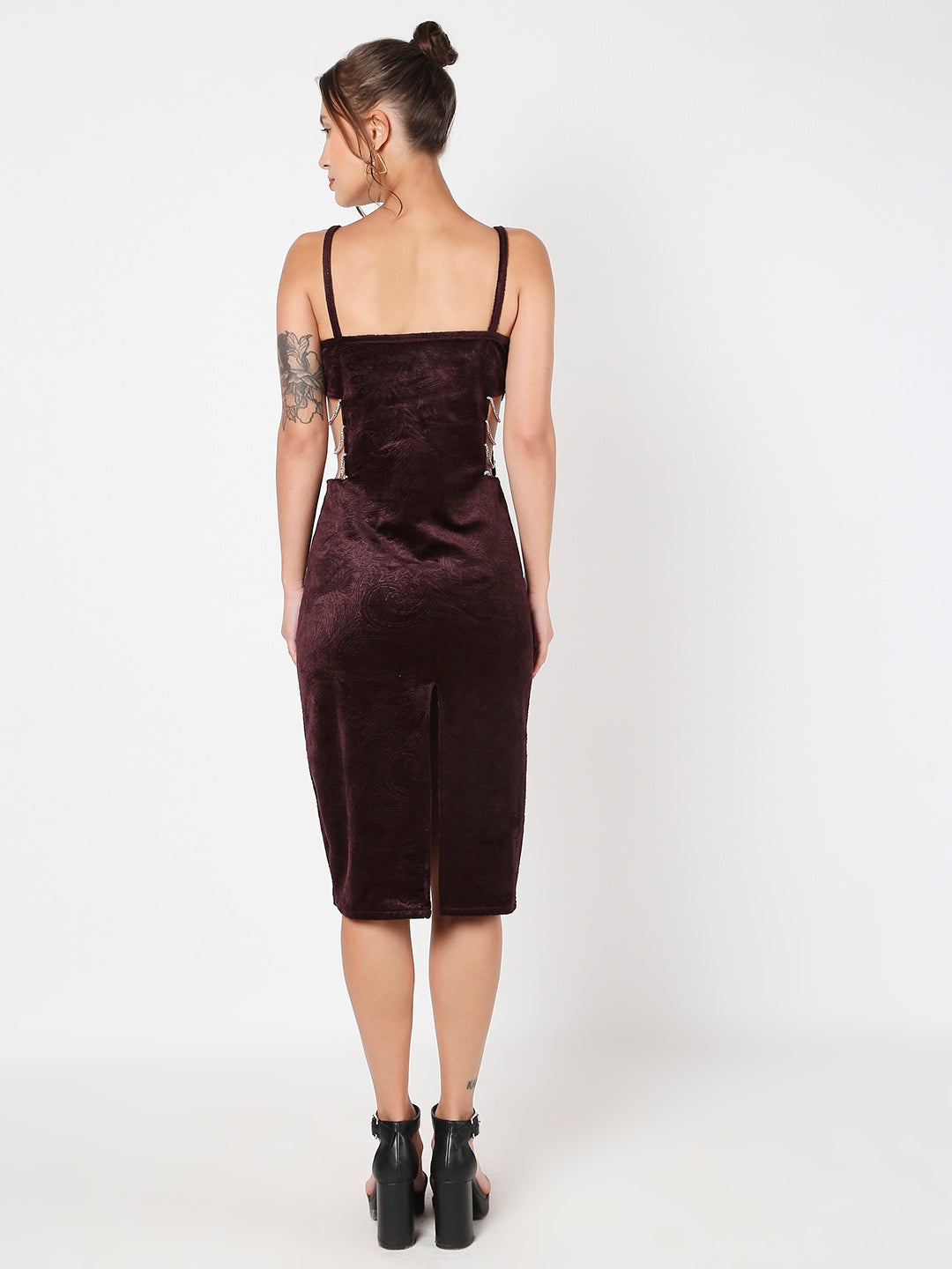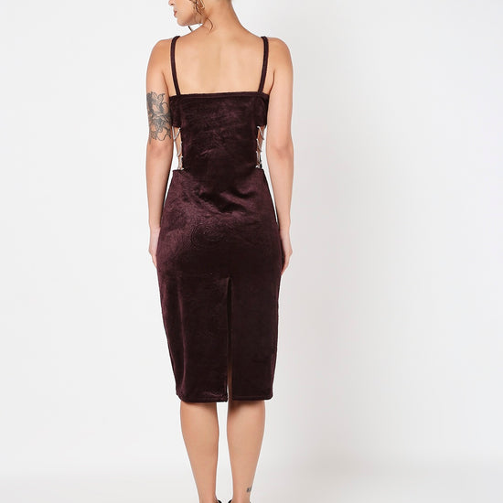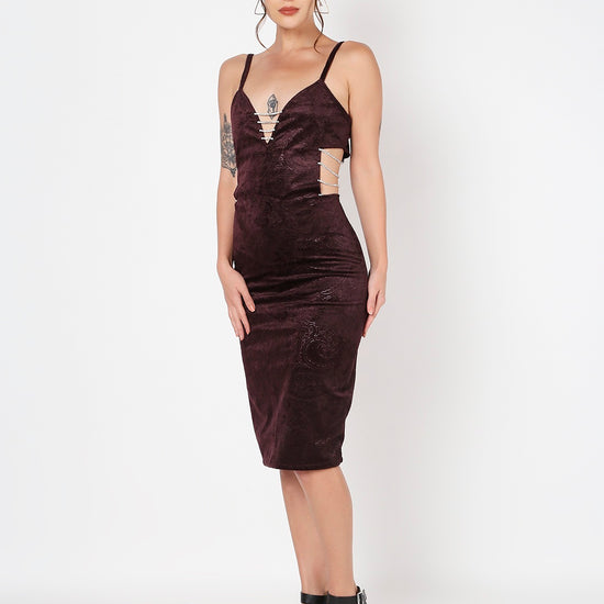 A beautiful purple velvet jacquard dress With rhinestone detailing