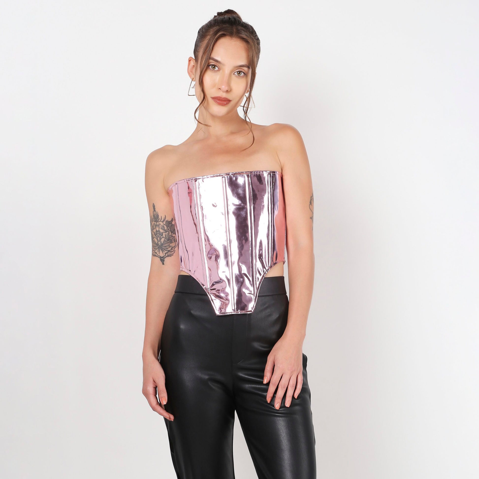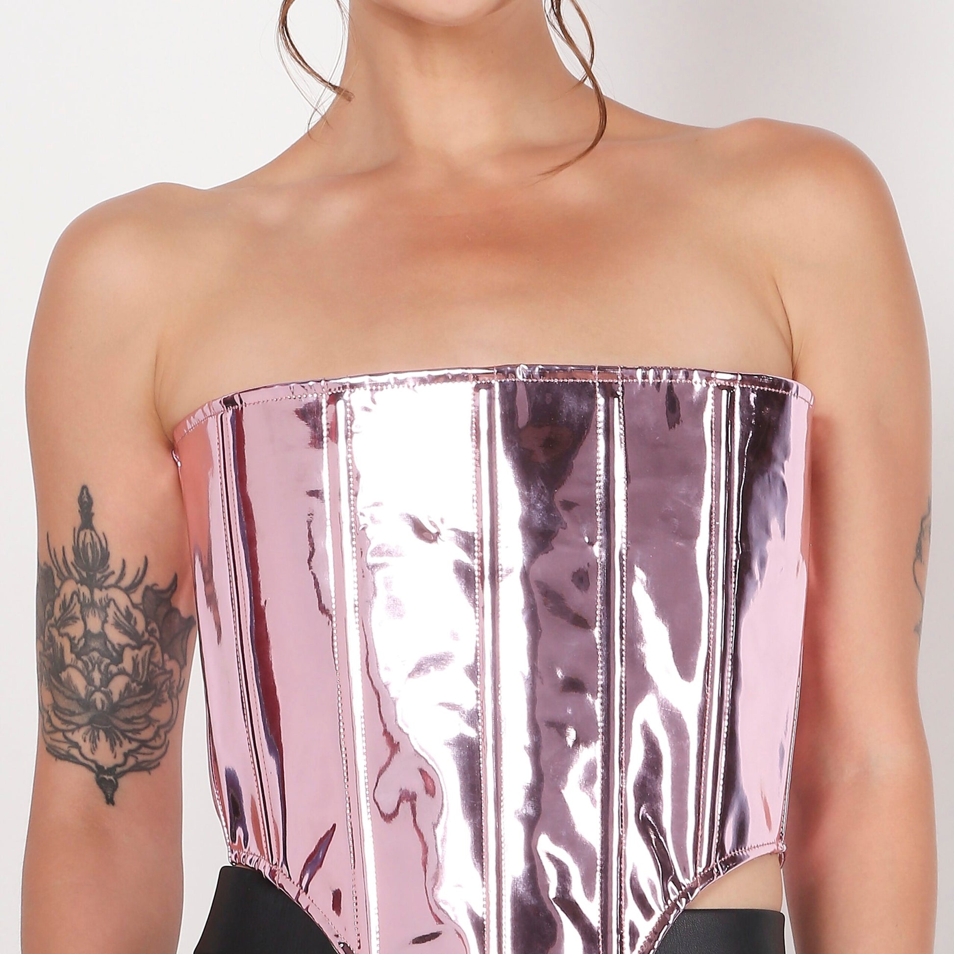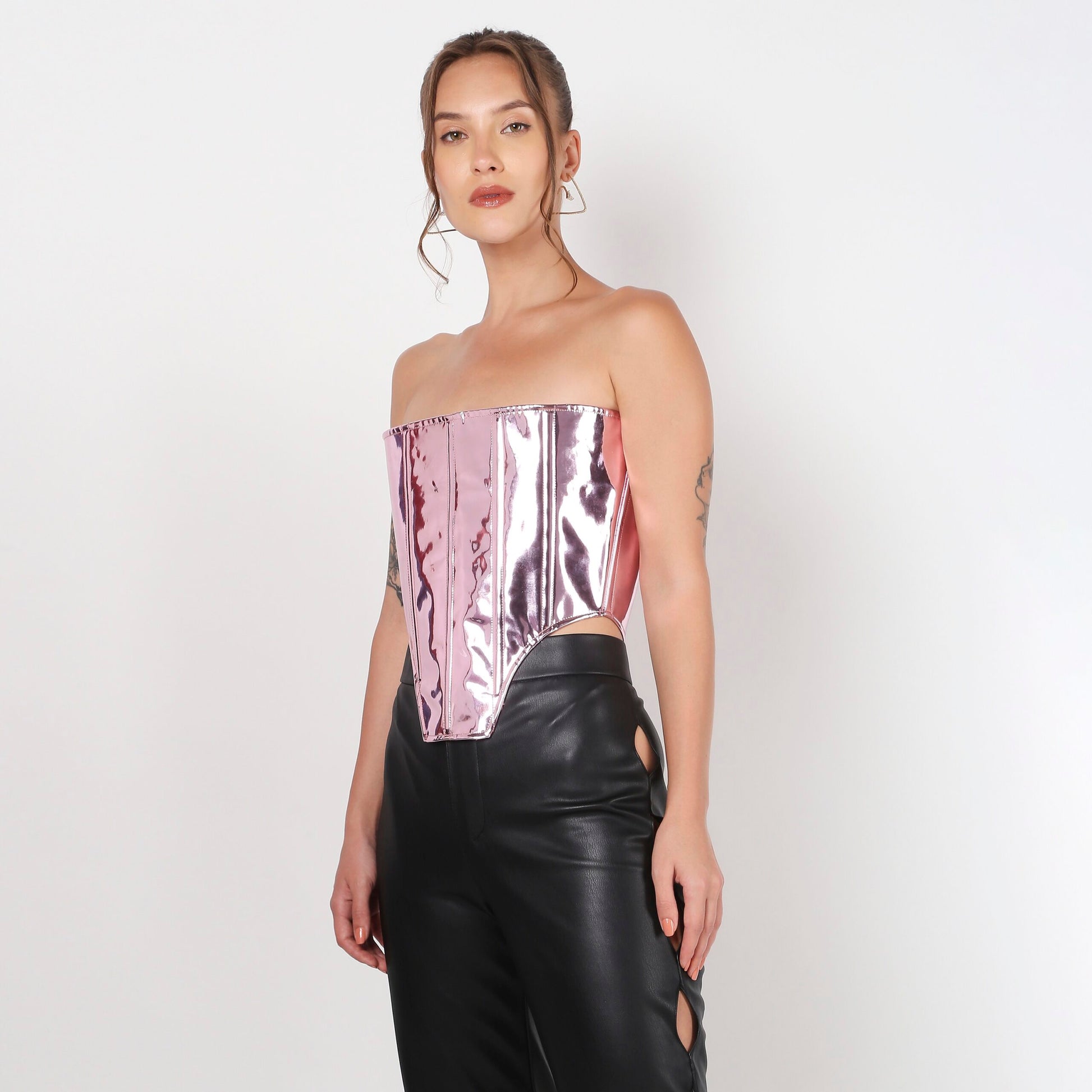 The Purple Leather Corset V-Cut exudes bold elegance with its striking purple faux leather material. Designed with boning for structure and a drawstring closure for a customizable fit, this corset offers both style and comfort. Perfect for adding a touch of sophistication to any look.