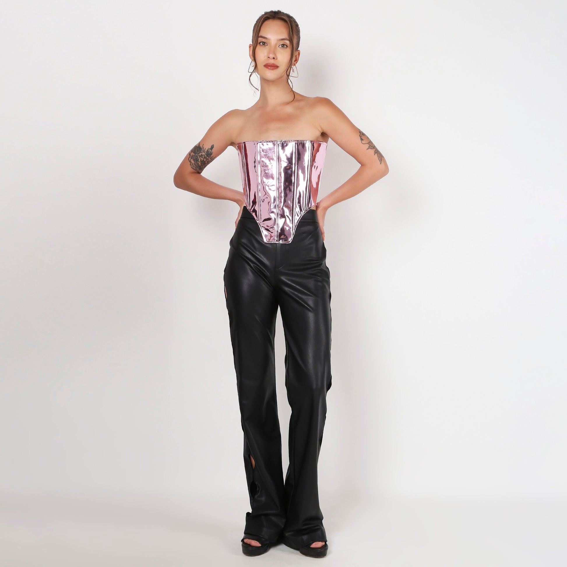 With its sleek design and rich purple hue, the Purple Leather Corset V-Cut is a must-have piece for those who want to stand out with confidence and style.