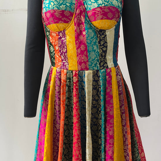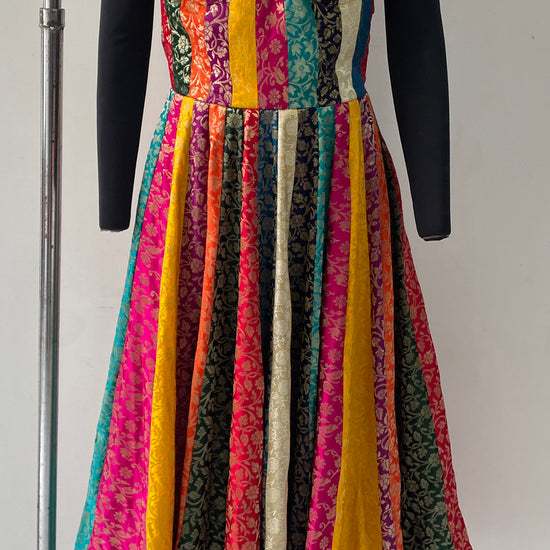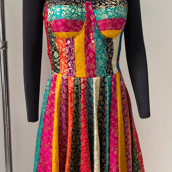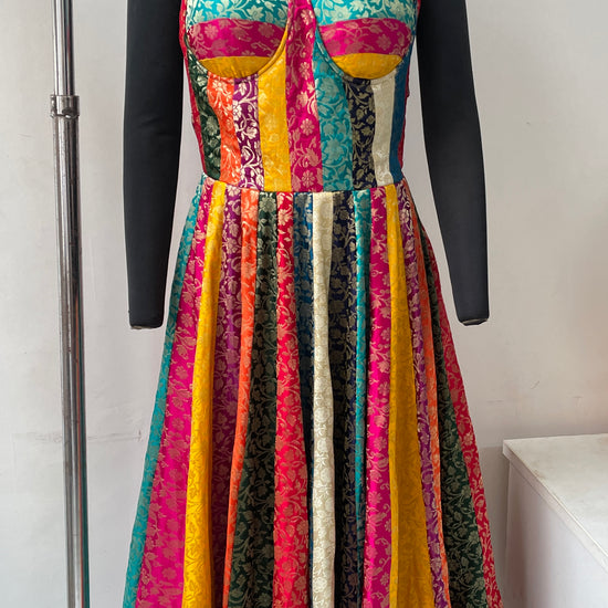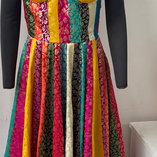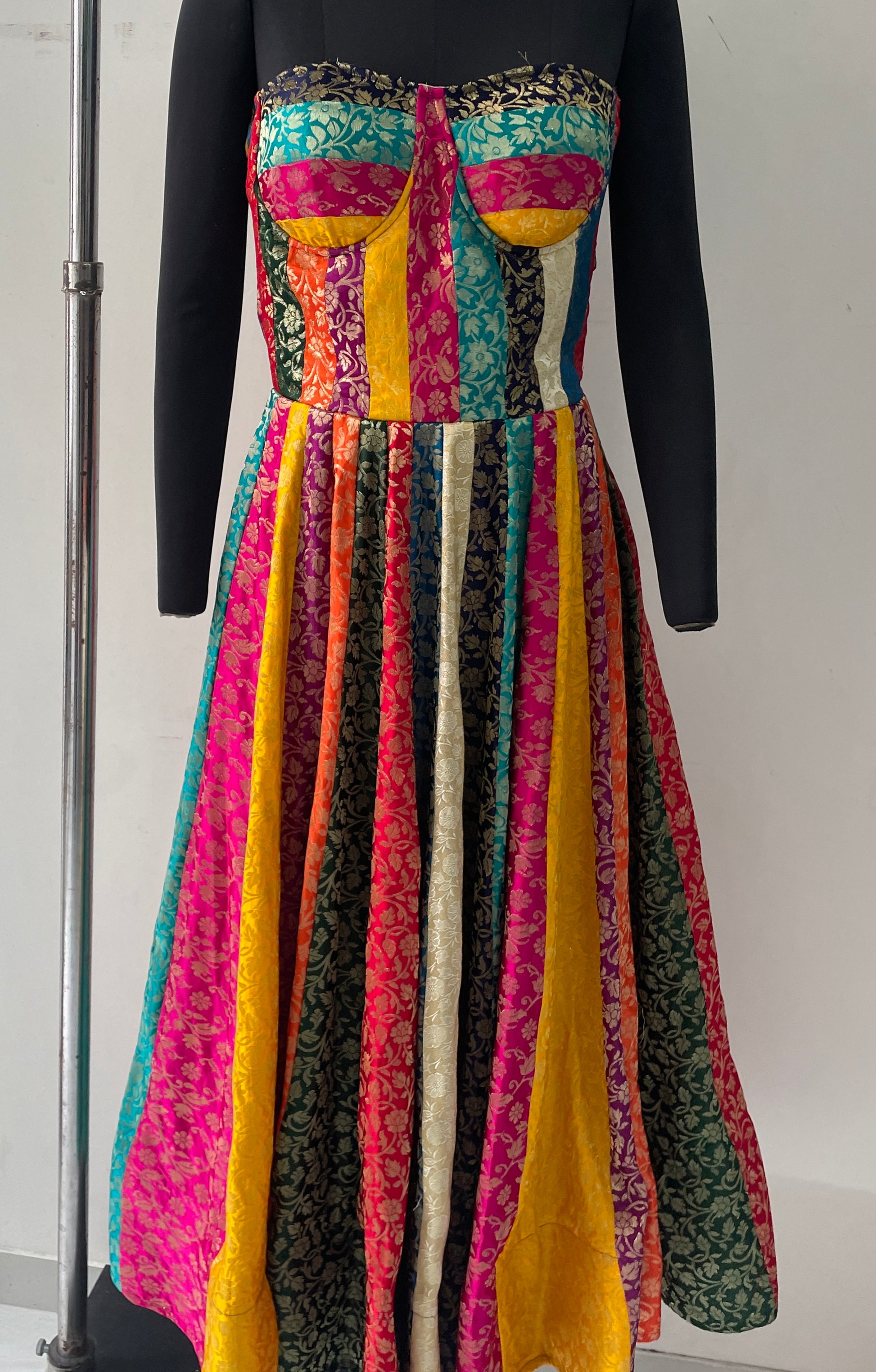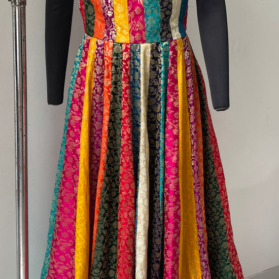 Ideal for weddings, festive events, or special occasions, this Rani Multicolor Brocade Corset Anarkali exudes grace and sophistication, making it a memorable addition to any wardrobe.