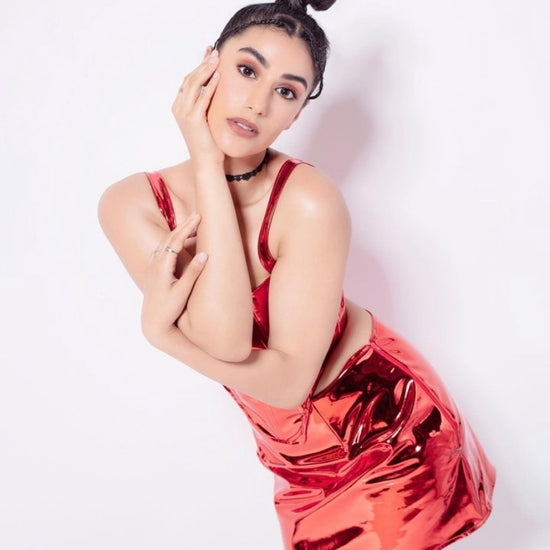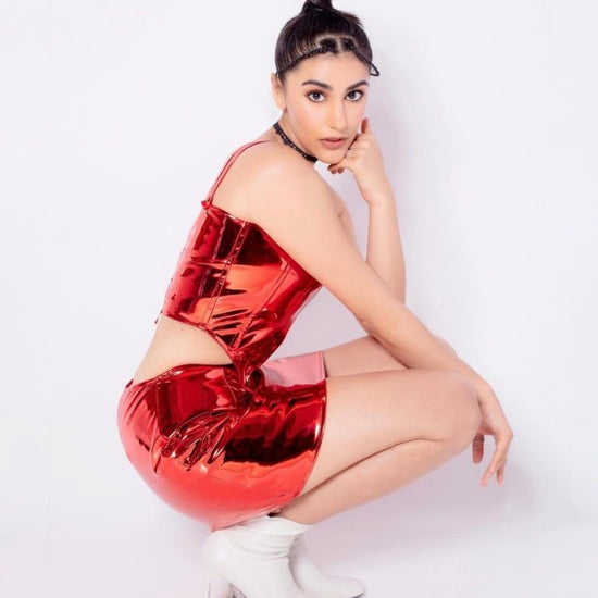 This Mirchi Red Leather Corset Top is perfect for pairing with high-waisted jeans, skirts, or even traditional fusion wear, letting you create a look that’s uniquely yours and effortlessly chic.