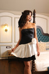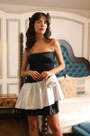 The Reign Dress combines flower and frill detailing on the bottom , it is a tube dress with no sleeves with elasticated pinching on each side to add to the beauty of this dress.