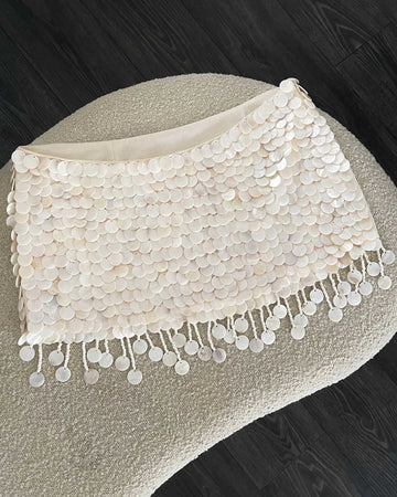 Elevate your warm-weather wardrobe with our Breezy Shell Skirt, a lightweight and effortlessly stylish piece inspired by coastal charm. Designed with a flattering A-line silhouette, this skirt features delicate shell prints (or embellishments) that bring a touch of seaside elegance to every step.