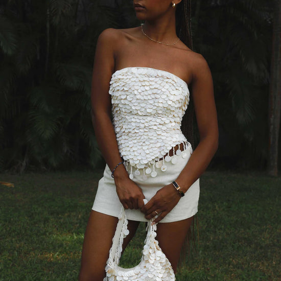 Elevate your warm-weather wardrobe with our Breezy Shell Skirt, a lightweight and effortlessly stylish piece inspired by coastal charm. Designed with a flattering A-line silhouette, this skirt features delicate shell prints (or embellishments) that bring a touch of seaside elegance to every step.