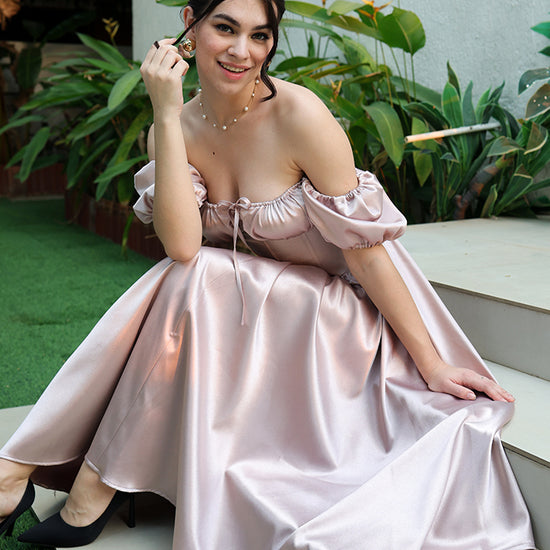 The Selena Corset Dress combines heavy boning on the bust , baloon shoulder sleeves with elasticated pinching on each side to add to the beauty of this dress.