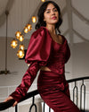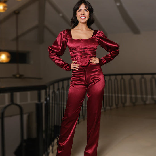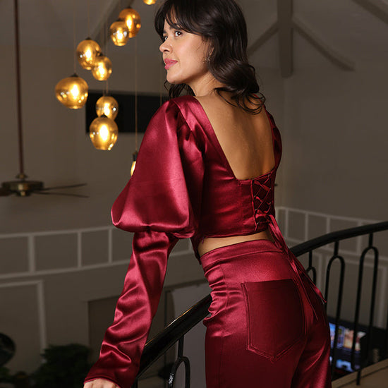 Our Seren corset is made from satin that'll make you feel your most glamorous as soon as you slip it on. It has a décolletage baring sleeve bodice and the sculptural boning defines your waist. The pretty lace up back allows you to control the fit and we love this paired with jeans or skirt for a more glam vibe.