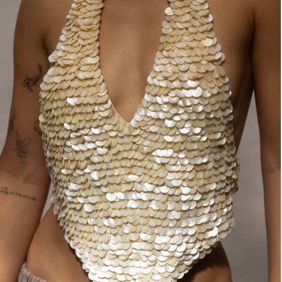 Elevate your beach look with our Hand-Beaded Elegance top – where timeless sophistication meets intricate craftsmanship. This show-stopping gown features meticulously hand-applied beads that shimmer with every movement, creating a dazzling effect from every angle.