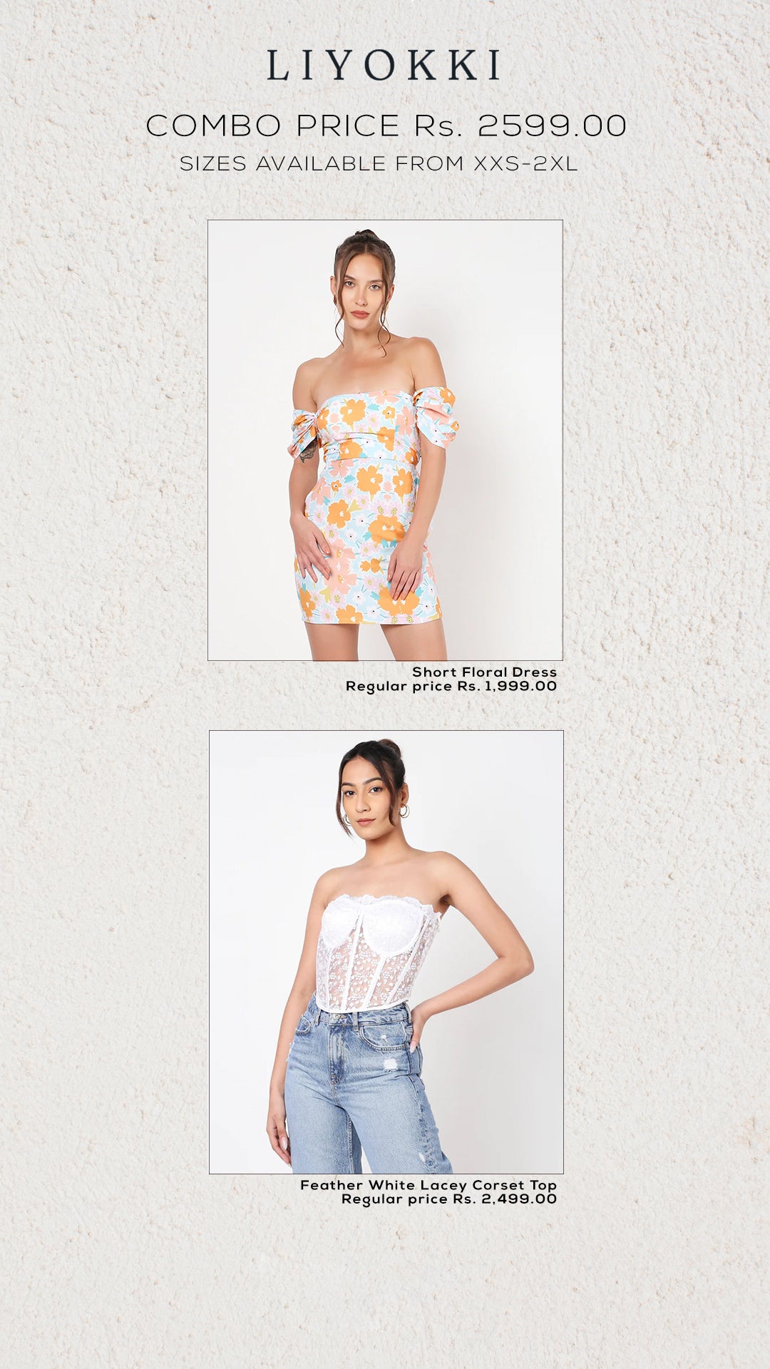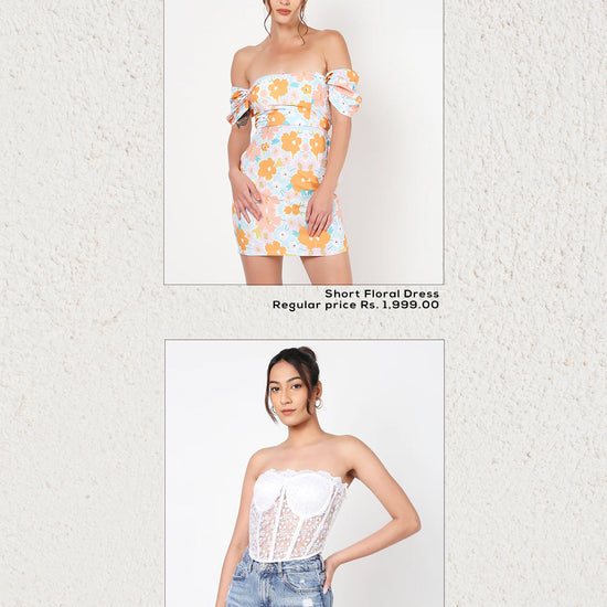 Short floral dress + white feather corser top