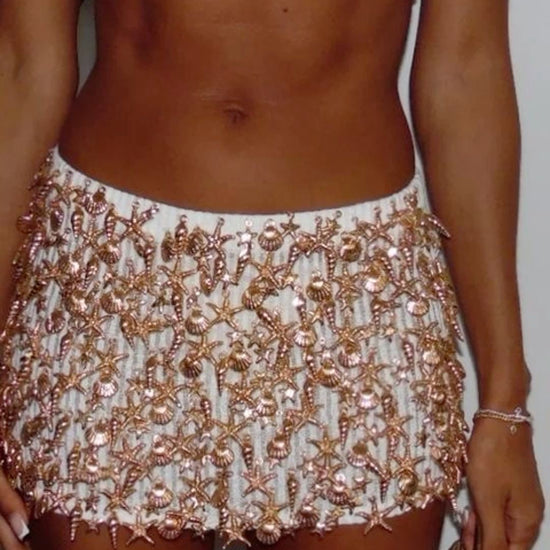Elevate your warm-weather wardrobe with our mermaid shell bikini set a lightweight and effortlessly stylish piece inspired by coastal charm. Designed with a flattering A-line silhouette, this skirt features delicate shell prints (or embellishments) that bring a touch of seaside elegance to every step.