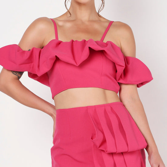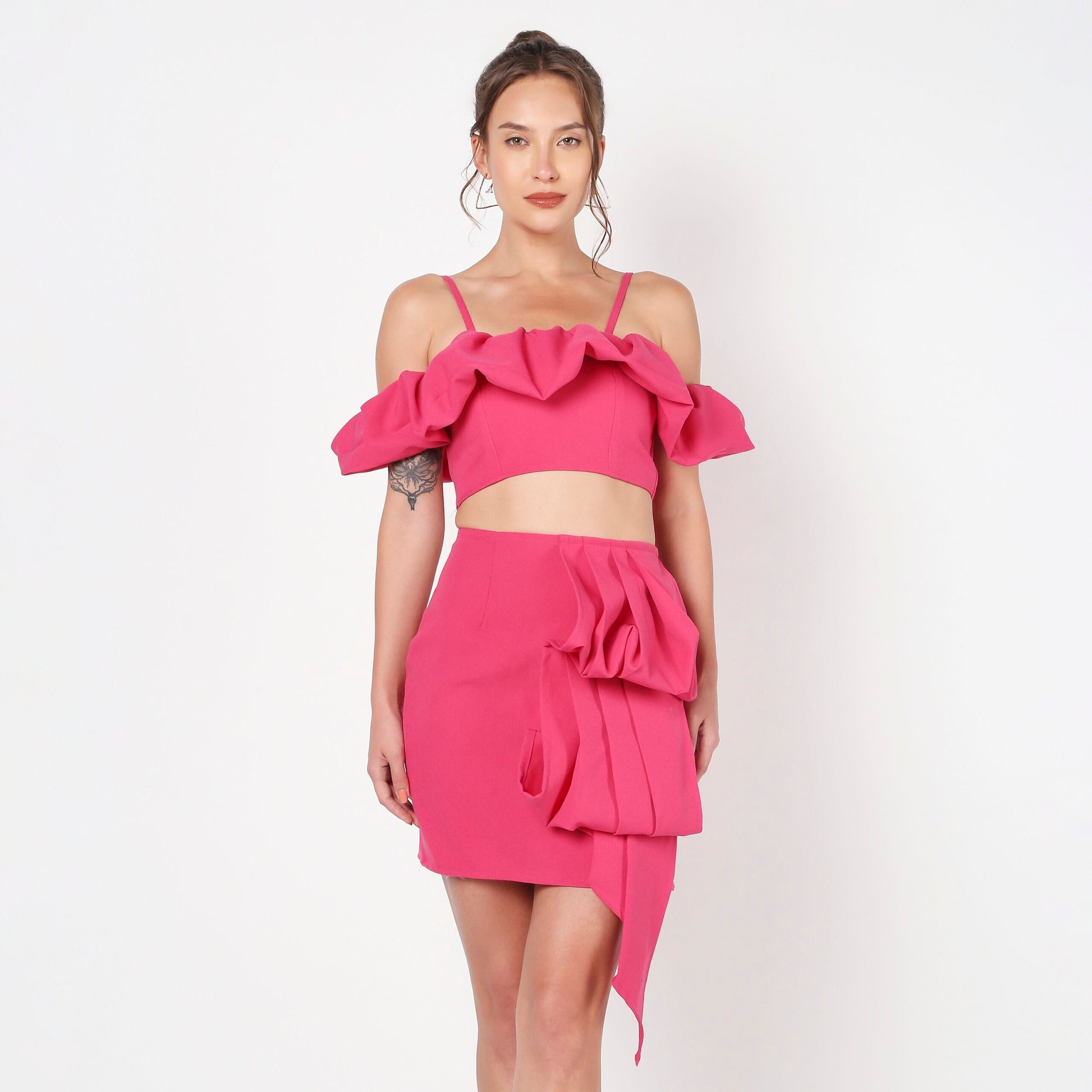 Elevate your wardrobe with the Tate Pink Frill Top and Skirt, a charming two-piece set perfect for any occasion. Designed with delicate frills and a feminine silhouette, this outfit combines elegance and comfort effortlessly.