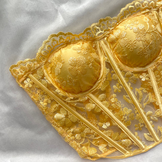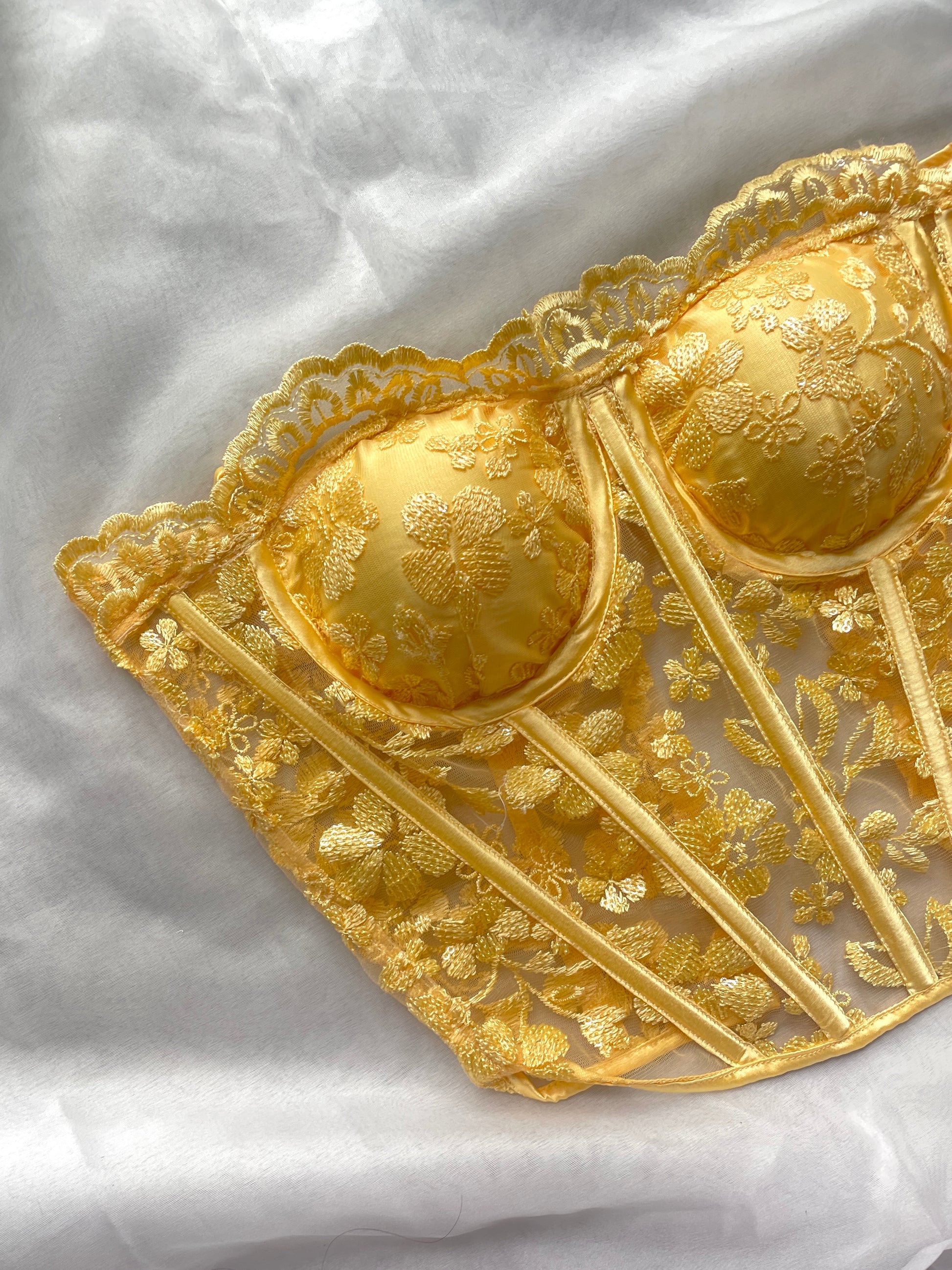 The Penelope Yellow Lacey Corset is the perfect blend of sophistication and comfort, adding a touch of glamour and femininity to your wardrobe.