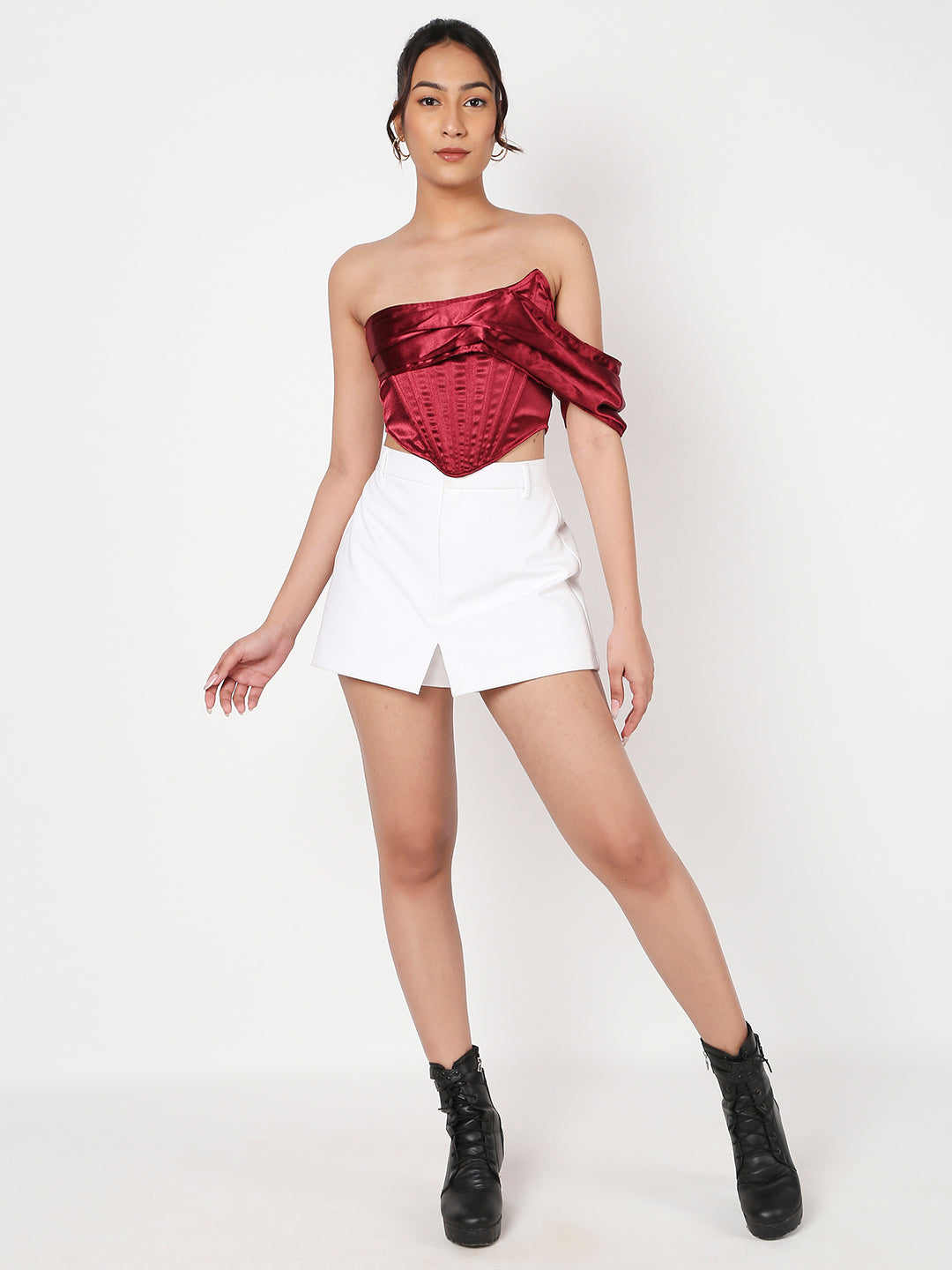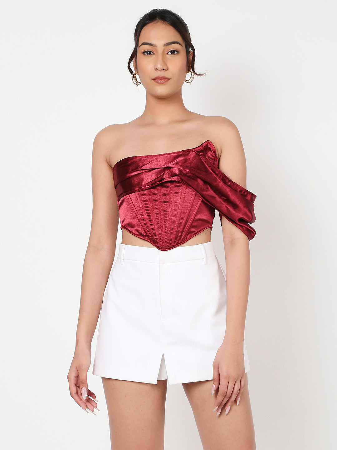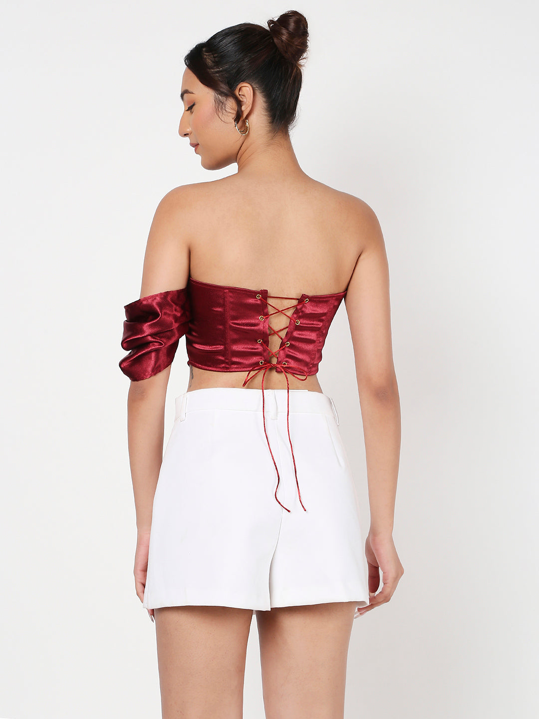 Make a bold statement with our Unicorn Red Corset Top, crafted from luxurious maroon satin for a sleek, sophisticated look. Featuring elegant pleating and structured boning, this corset enhances your natural silhouette while offering a flattering, form-fitting design. The rich red hue adds a touch of drama, making it perfect for a glamorous, confident look.