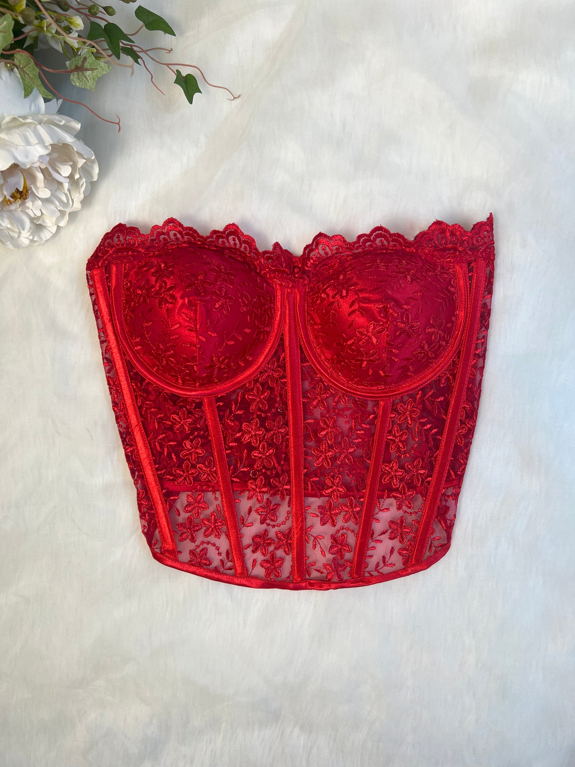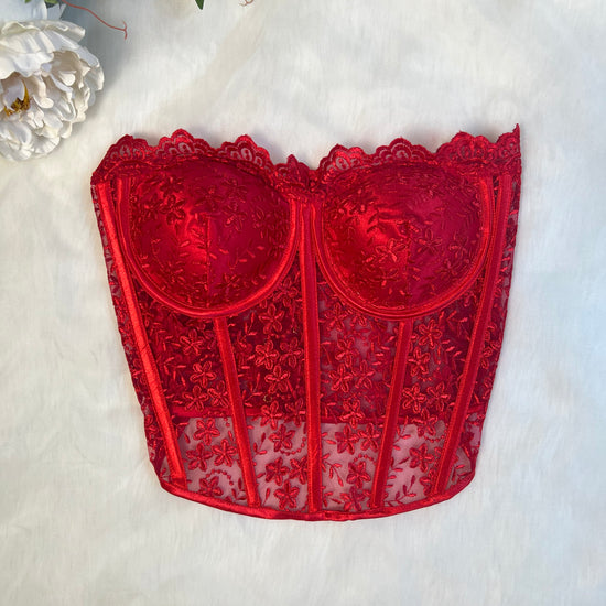 Bring a touch of festive charm and sophistication to your wardrobe with the Santa Red Lacey Corset Top—perfect for special occasions or a night out.