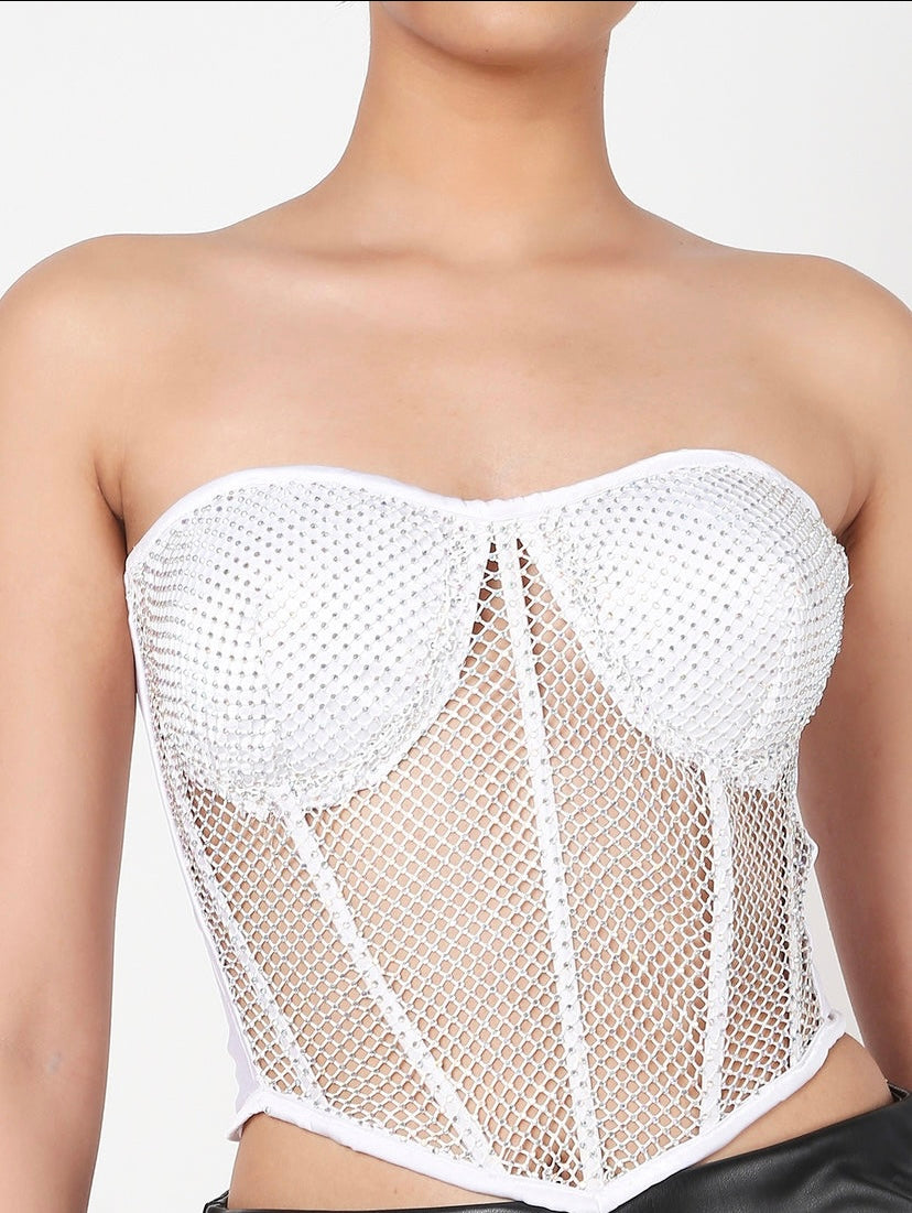 Ideal for weddings, parties, or any event where you want to stand out, the White Rhinestone Corset Top adds the perfect amount of sparkle and sophistication to your wardrobe.