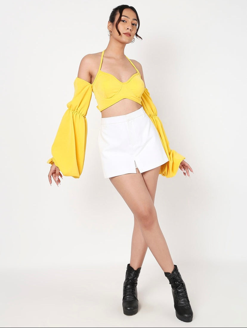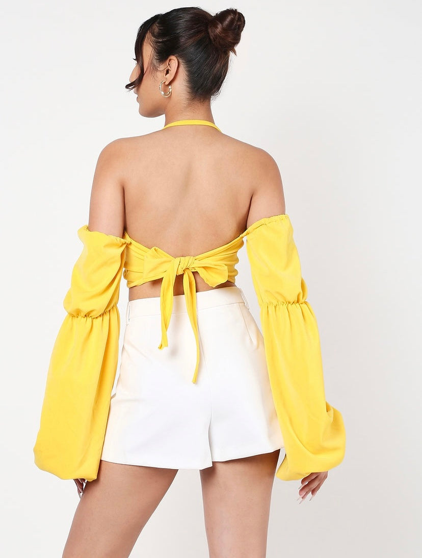 Whether you’re dressing up for an event or adding a vibrant touch to casual wear, the Yellow Bell Sleeves Corset Top is sure to turn heads and make a statement.