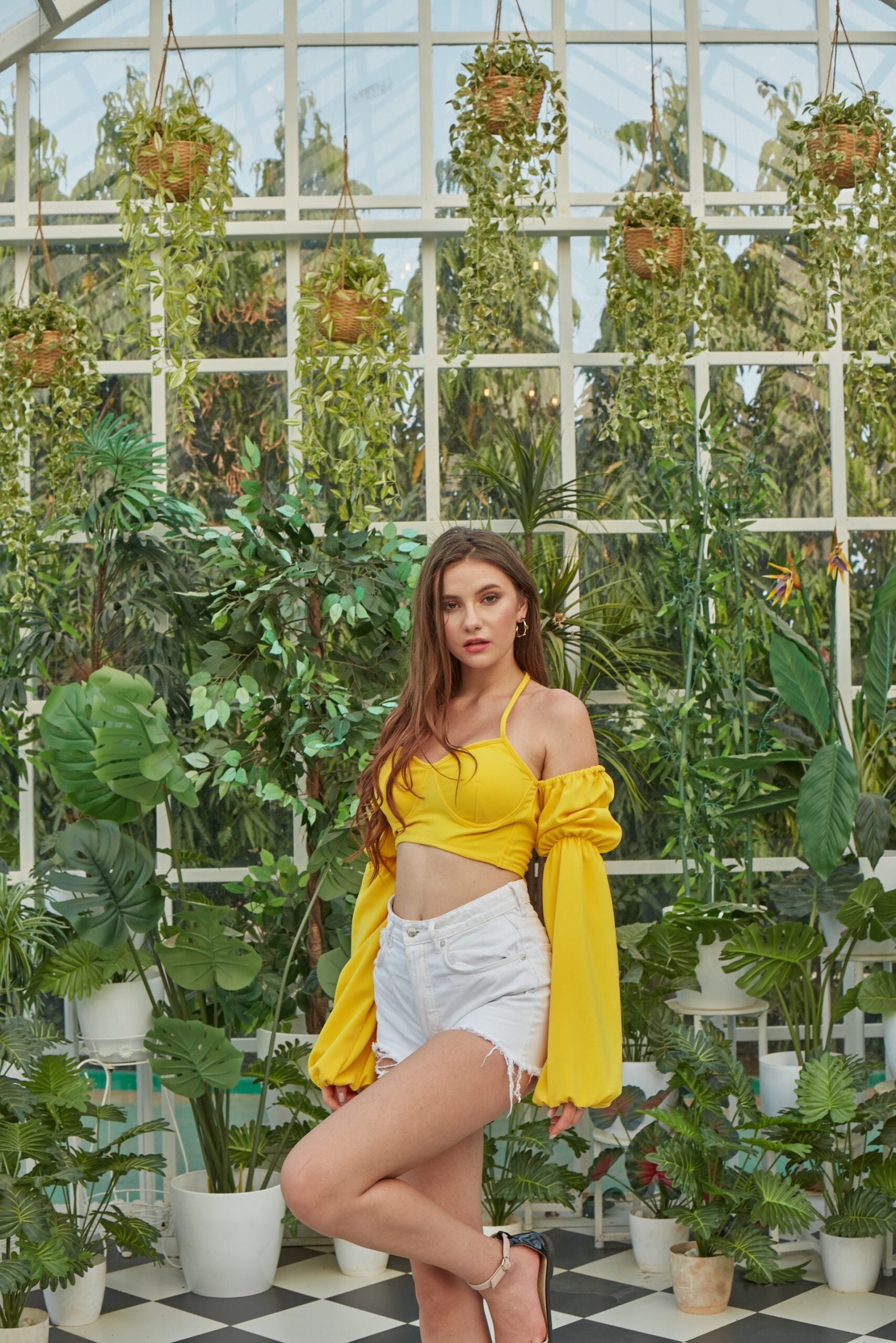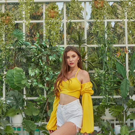 Whether you’re dressing up for an event or adding a vibrant touch to casual wear, the Yellow Bell Sleeves Corset Top is sure to turn heads and make a statement.