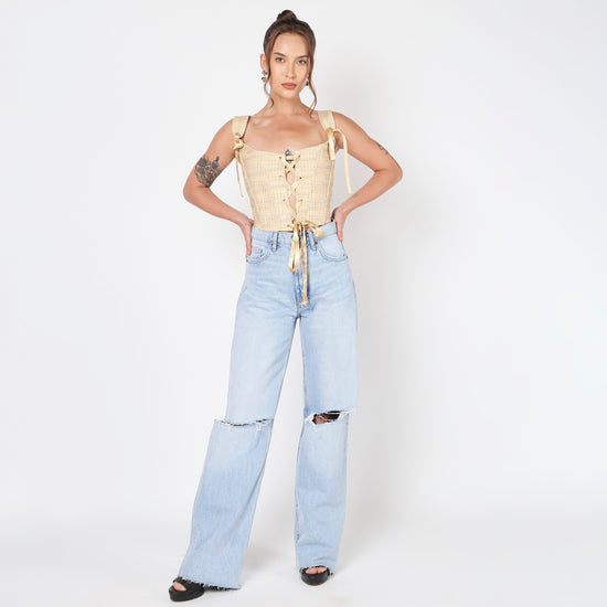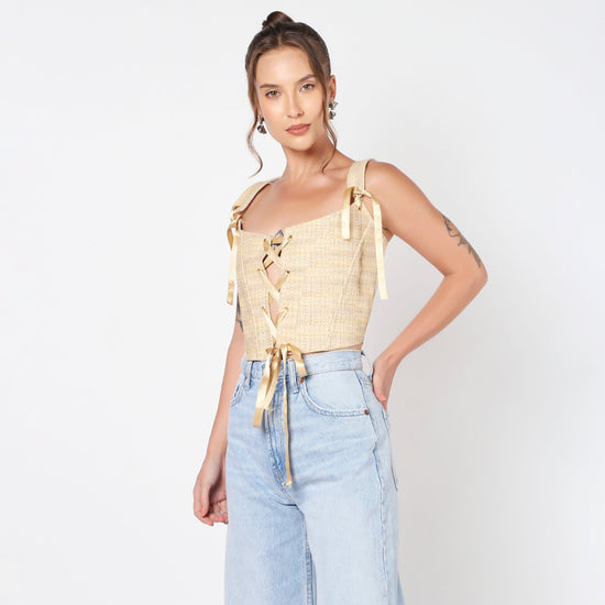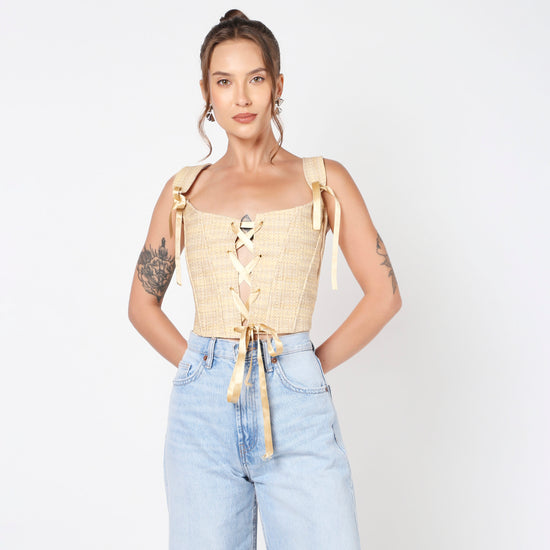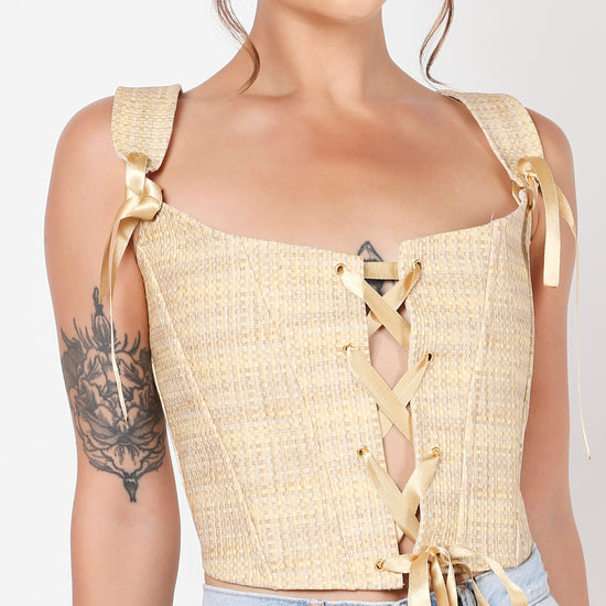 Elevate your wardrobe with the Yellow Mellow Corset Top, offering both fashion-forward design and a flattering fit. Perfect for a night out or special occasion.